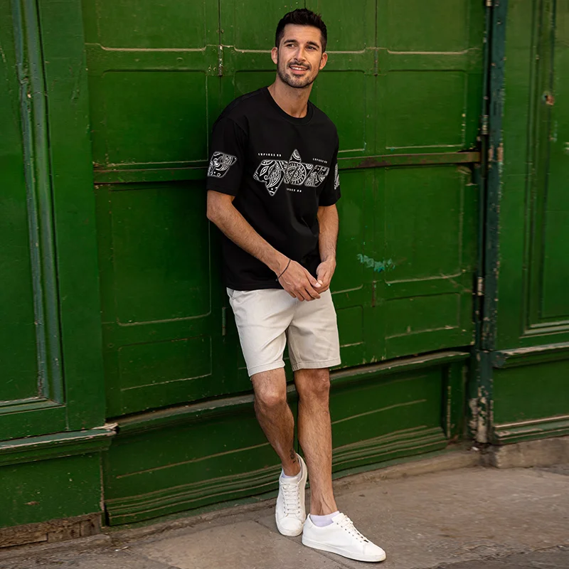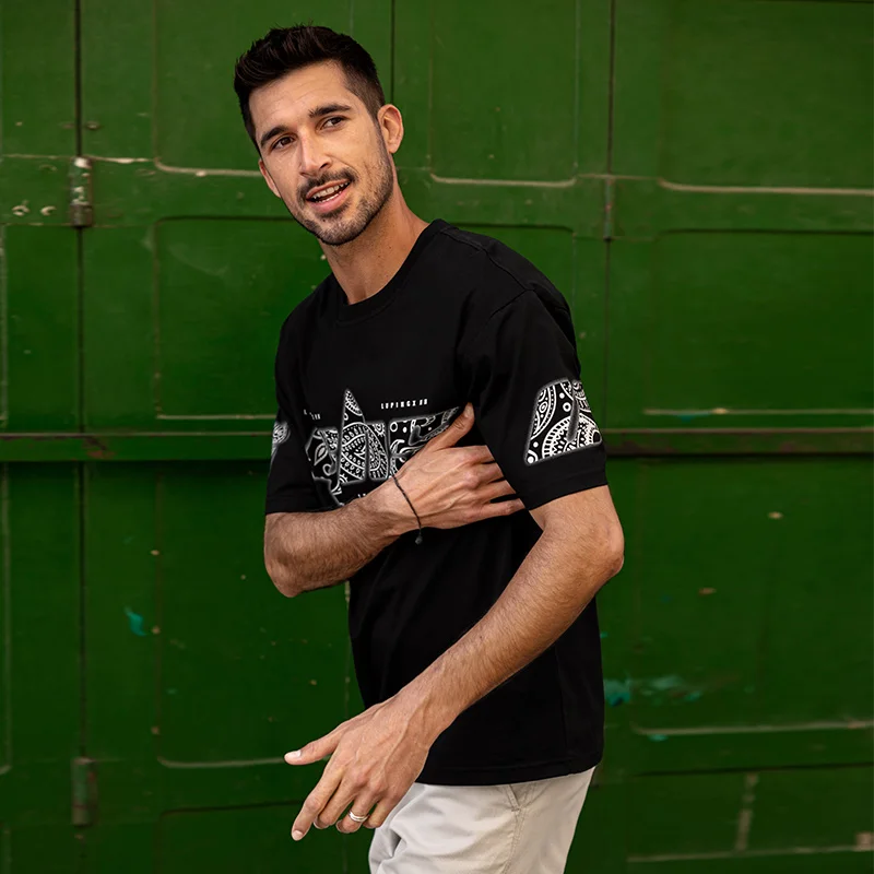 Мужская футболка с коротким рукавом KUEGOU, черная футболка с геоме...