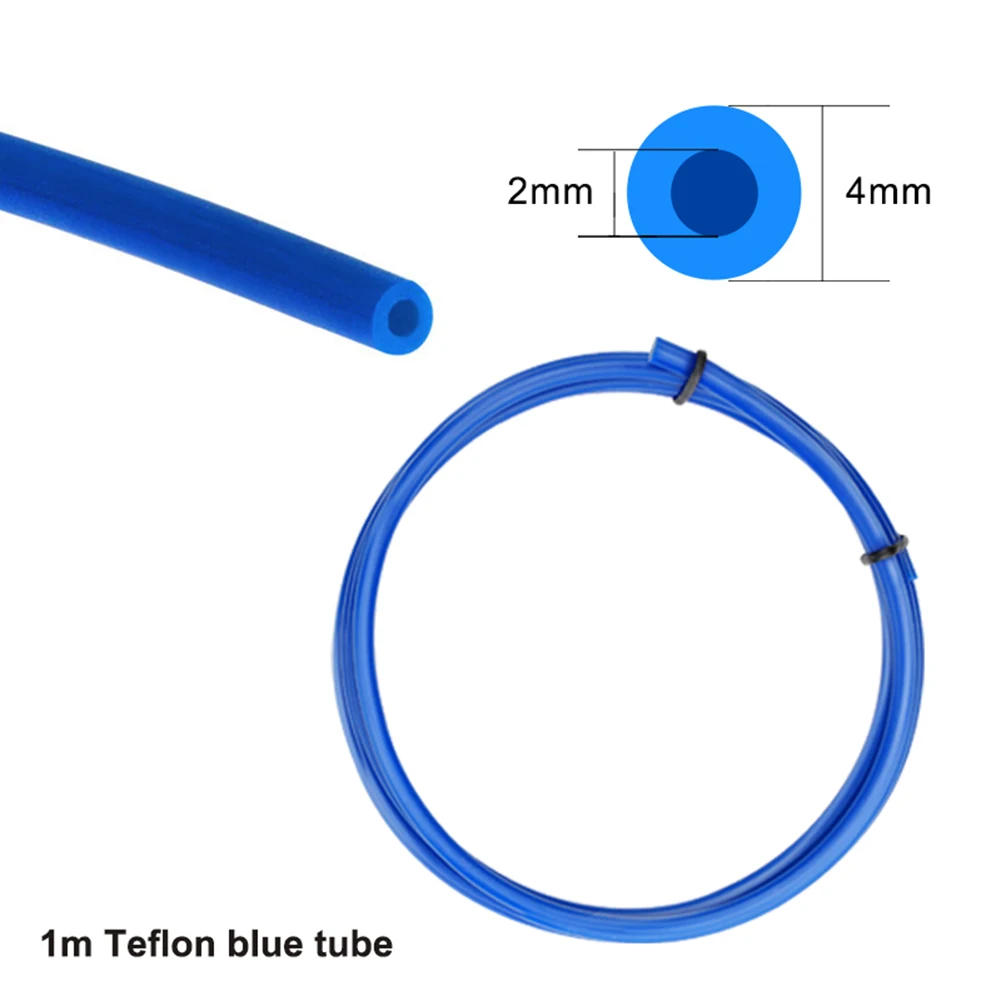 2. 1*1 метр синяя PTFE трубка, с самым низким трением на рынке. Меньшее трение означает более высокую реакцию, меньшее вытягивание, более точную печать, меньшее скольжение экструдера, износ и печать толстых нитей (например, некоторых древесных наполнителя или железного наполнения), меньшее засорение.