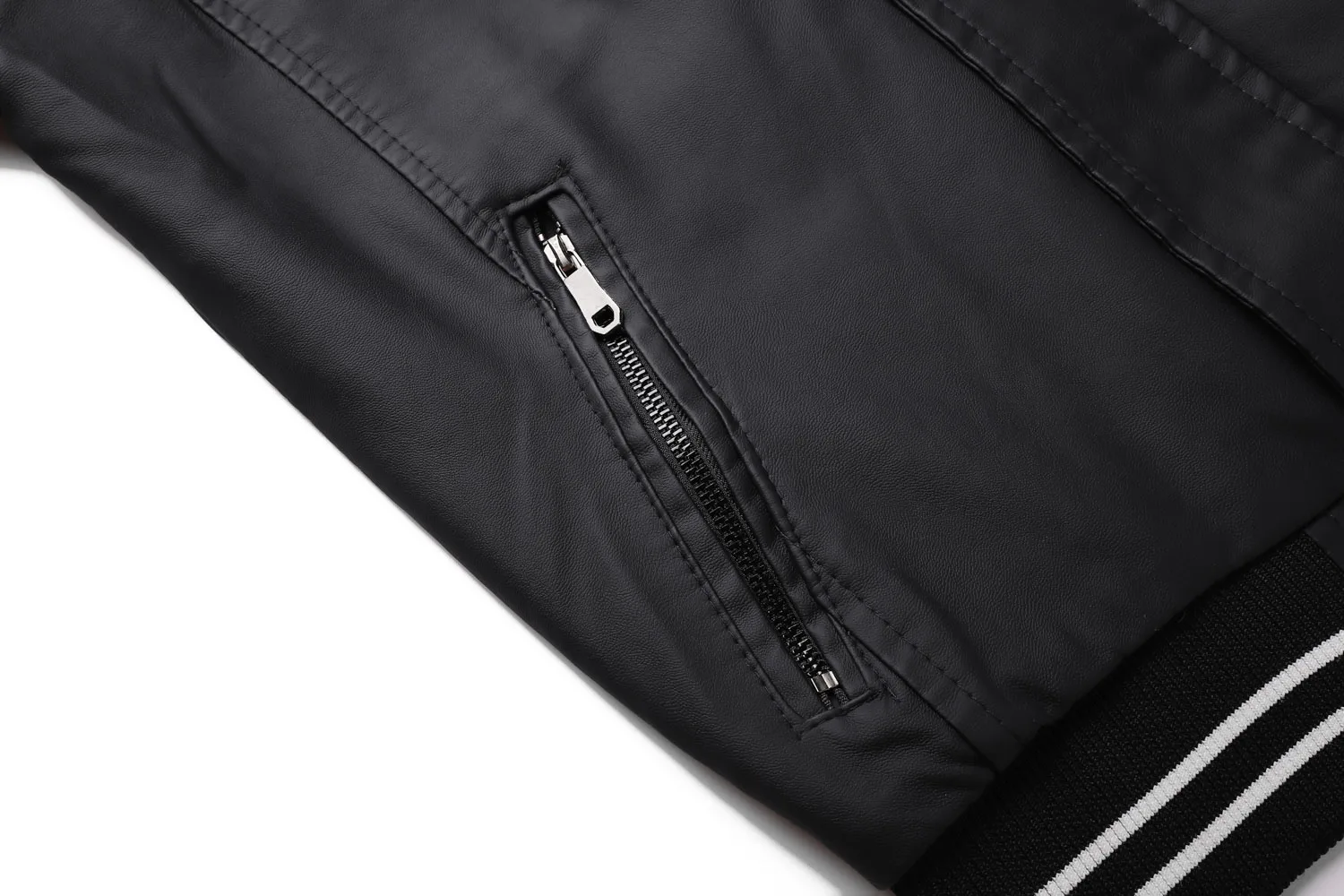 Мотоциклетная куртка из искусственной кожи, Мужская зимняя повседне...