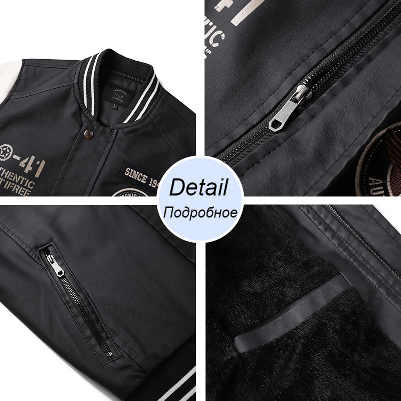 Новая кожаная куртка, Мужская куртка-бомбер, мотоциклетная флисовая...