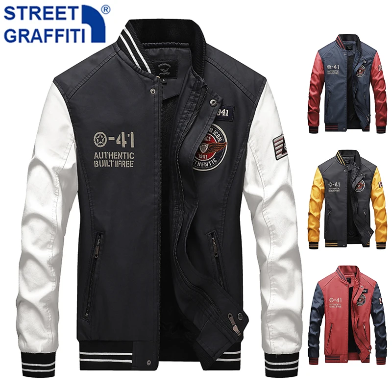 Мужская кожаная куртка, новинка 2022, мужские бейсбольные куртки из...