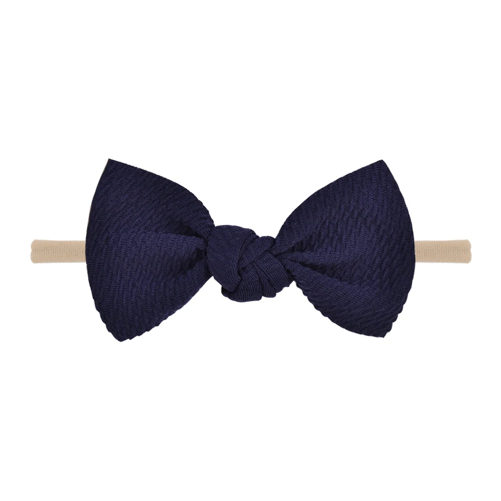 Повязка на голову детская однотонная эластичная с бантом, 3,7 дюйма