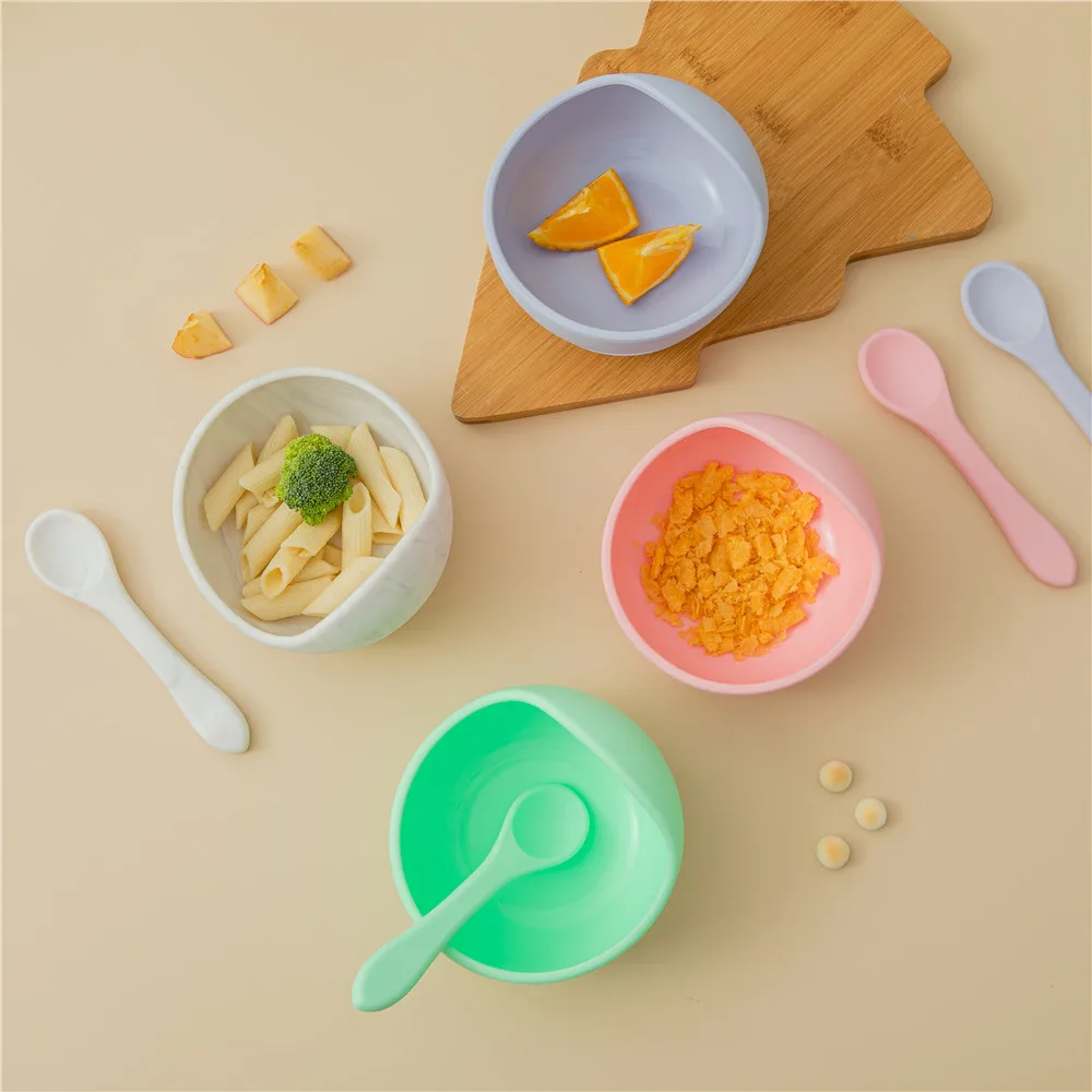 Детские Силиконовые блюда для кормления, Детская миска, ложка, набор без бисфенола А, Нескользящие детские столовые приборы, подарок для детей