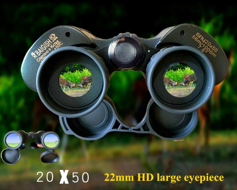 Полностью металлический бинокль HD Военный бинокль Lll телескоп ночного видения широкоугольный Карманный миниатюрный русский зум Монокуляр Baigish 20X50