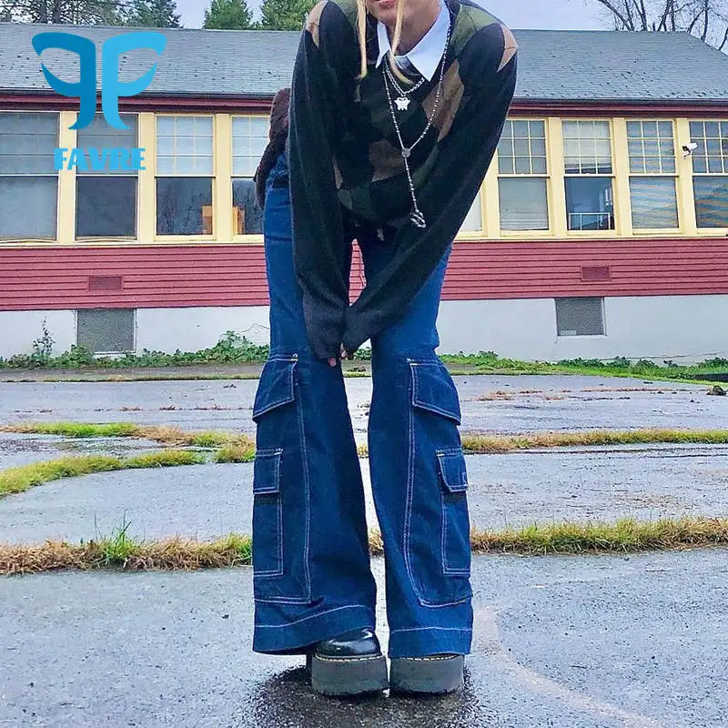Женские джинсы в стиле пэчворк FAVRE, винтажные повседневные мешковатые прямые брюки с высокой талией, женские длинные брюки, уличная одежда, джинсовые брюки