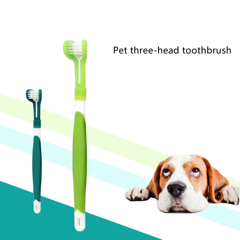 Регулируемая зубная щетка с тремя головками, многоугольная зубная щетка для собак с добавлением неприятного дыхания, зубов, уход за собакой, кошкой, чистящая рот