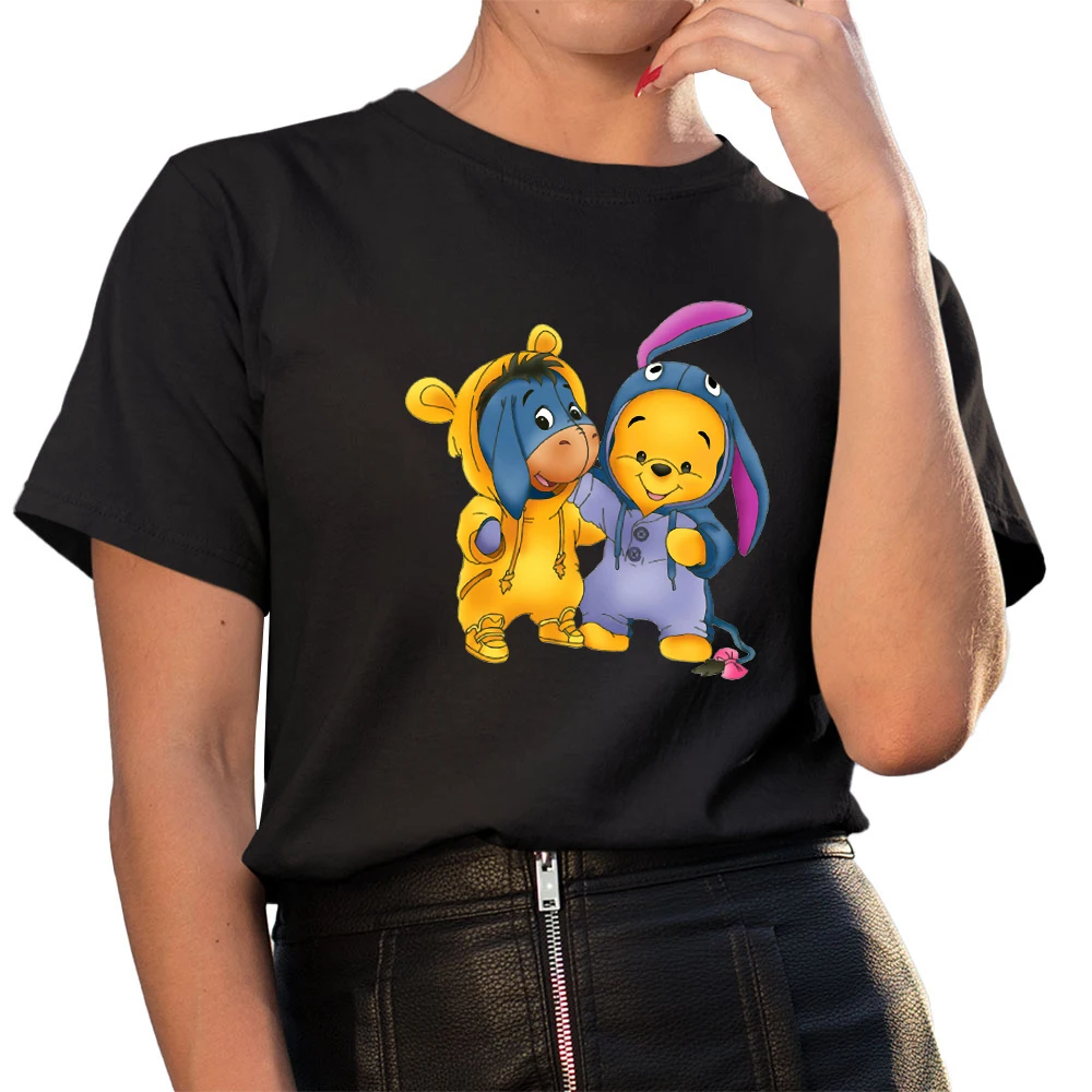Футболка с изображением Винни-Пуха, тигра, поросенка, Eeyore, женская футболка с круглым вырезом для девушек, милые черные футболки, женская футболка Disney, Прямая поставка