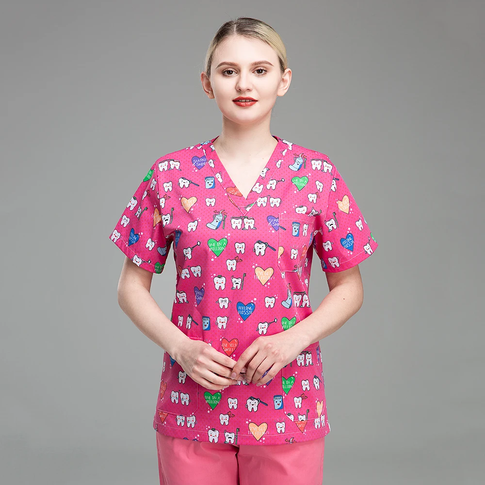 Scrubs tops Cute Cartoon printing Kindergarten teacher workwear pet...