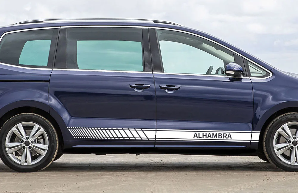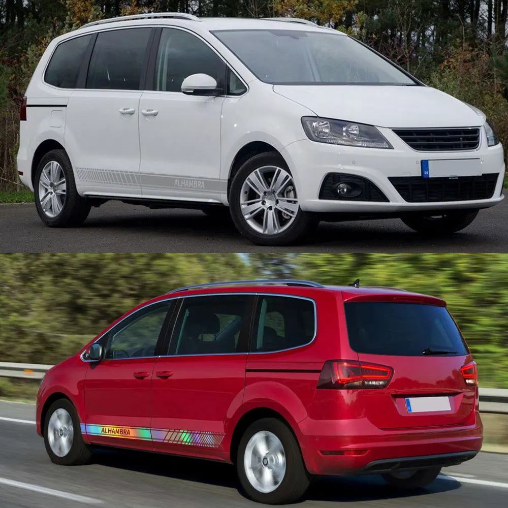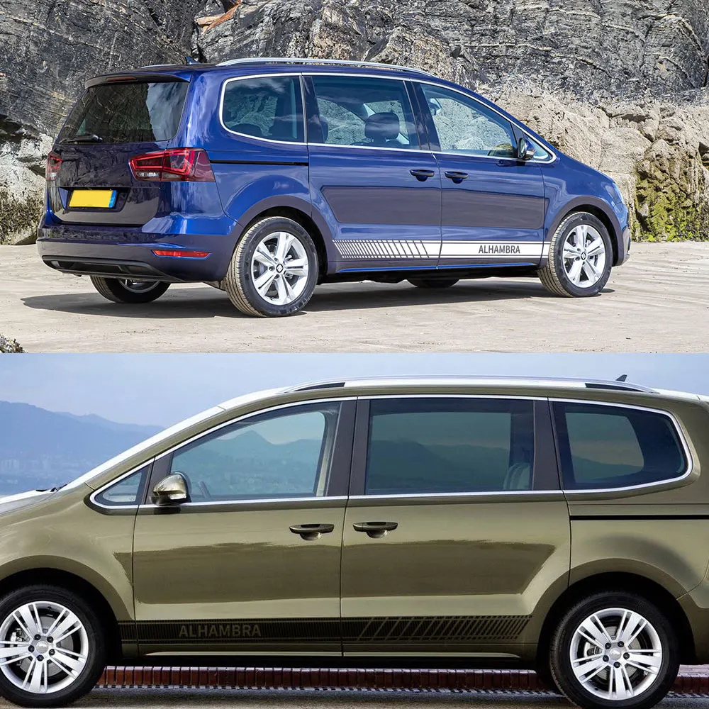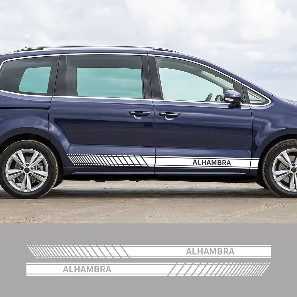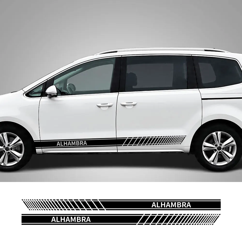 2 шт. наклейки для автомобильной двери, боковой юбки для сиденья, Alhambra, спортивные полосы, Стайлинг, тюнинг, авто аксессуары, виниловые наклейки