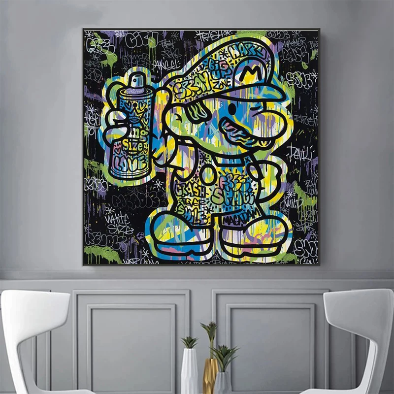Художественный плакат на холсте в стиле граффити, домашняя живопись в стиле Марио, настенное изображение, Современное украшение для гостиной и спальни icon star icon star icon star icon star icon star