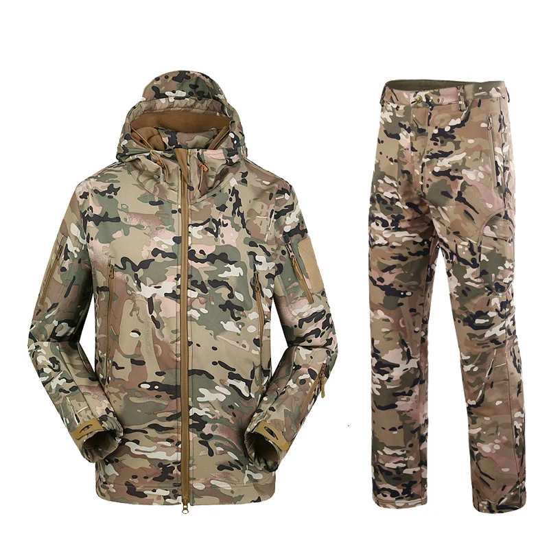Мужской Водонепроницаемый Военный лыжный костюм, камуфляжный Тактический Костюм, зимний флисовый костюм с мягкой оболочкой акулы, комплект мужской куртки для сноуборда