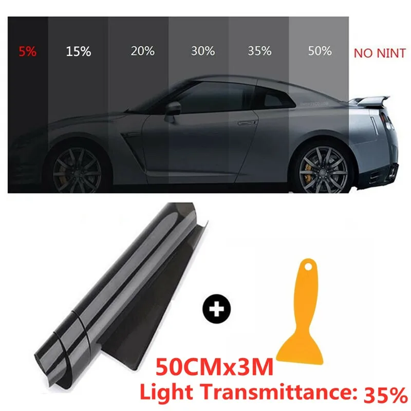 1 рулон, 50 см x 3 м, 515203550 процентная Тонировочная пленка для окон, стеклянная наклейка, Солнцезащитная пленка для автомобиля, защита от ультрафиолета, стикеры, пленки