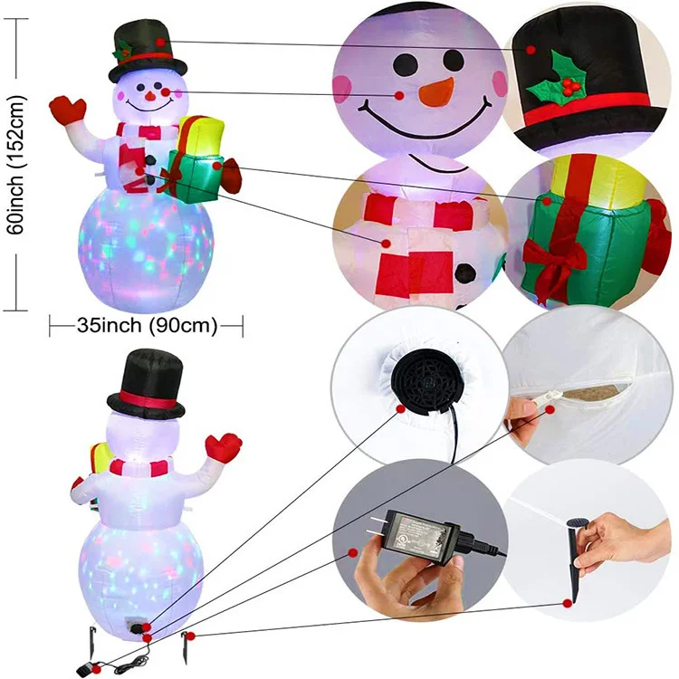 150 см Рождественский надувной снеговик со светодиодный Ной подсвет...