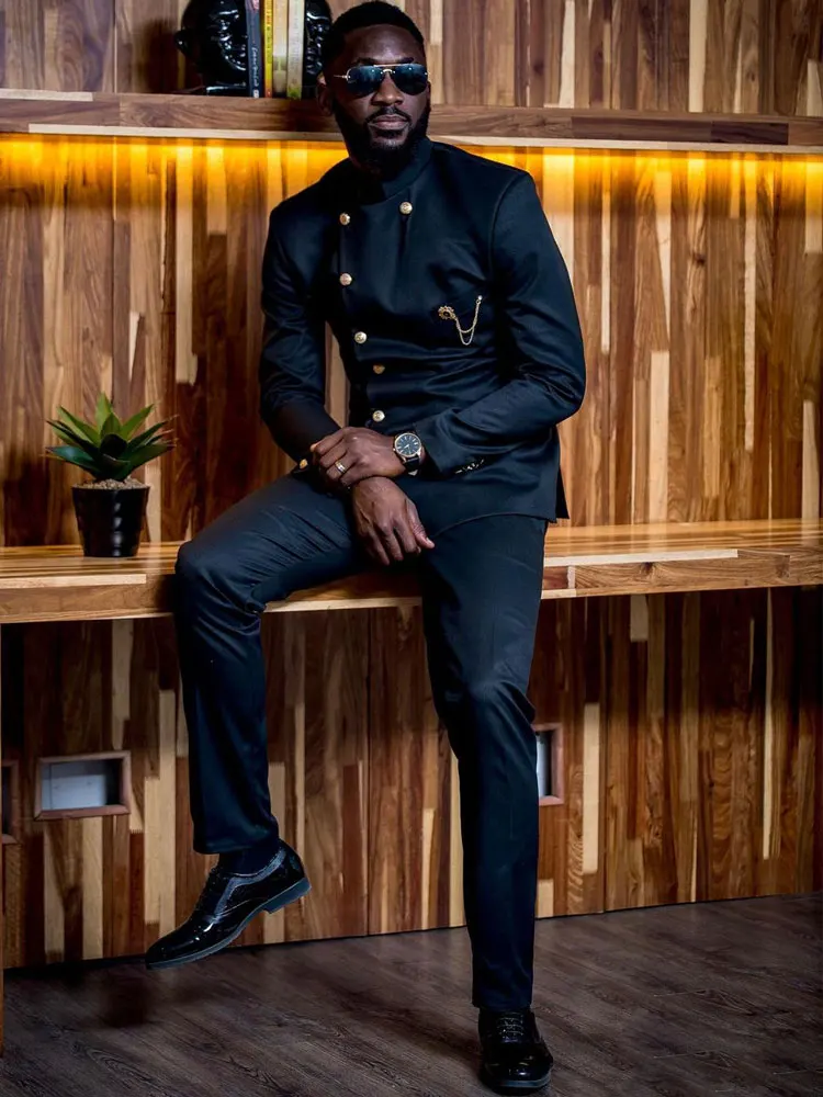 Черный мужской костюм-двойка, Свадебный блейзер с высоким воротником, облегающий мужской смокинг, двубортный костюм для жениха, пиджак и брюки для выпускного вечера