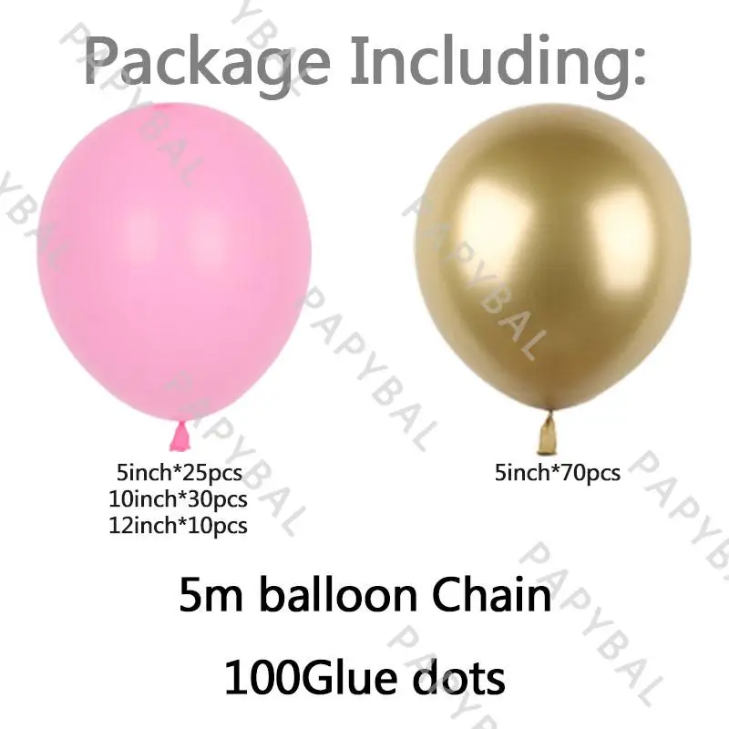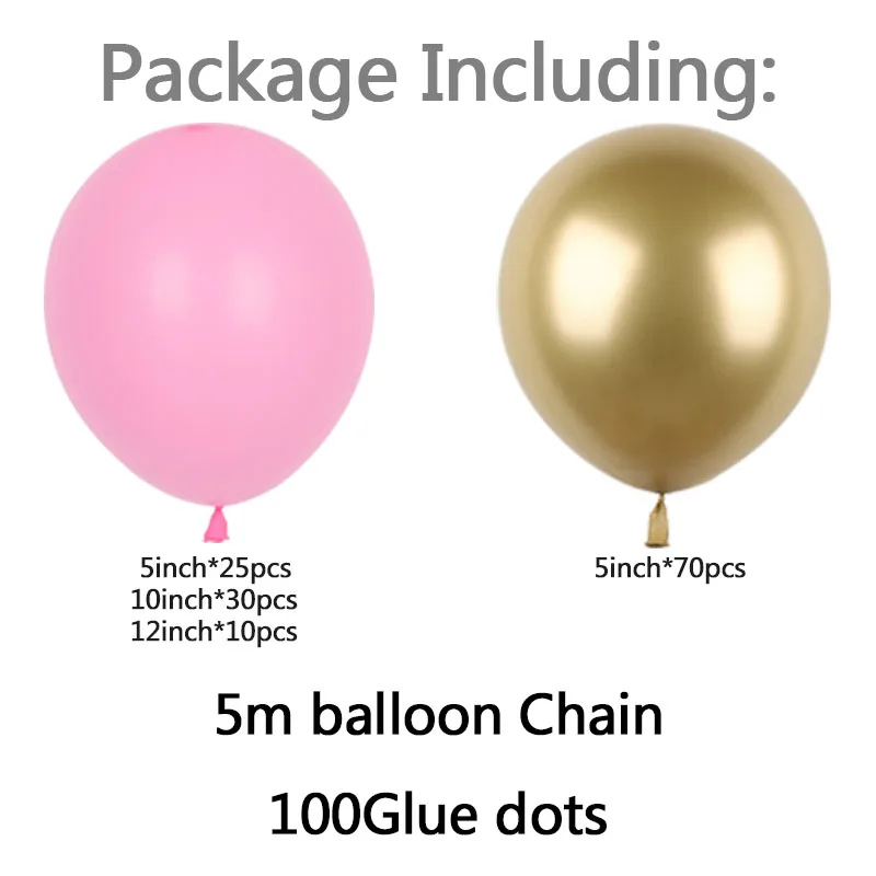 Шары воздушные золотистые, розовые, пурпурные, 133, комплект гирлян...