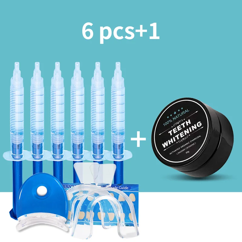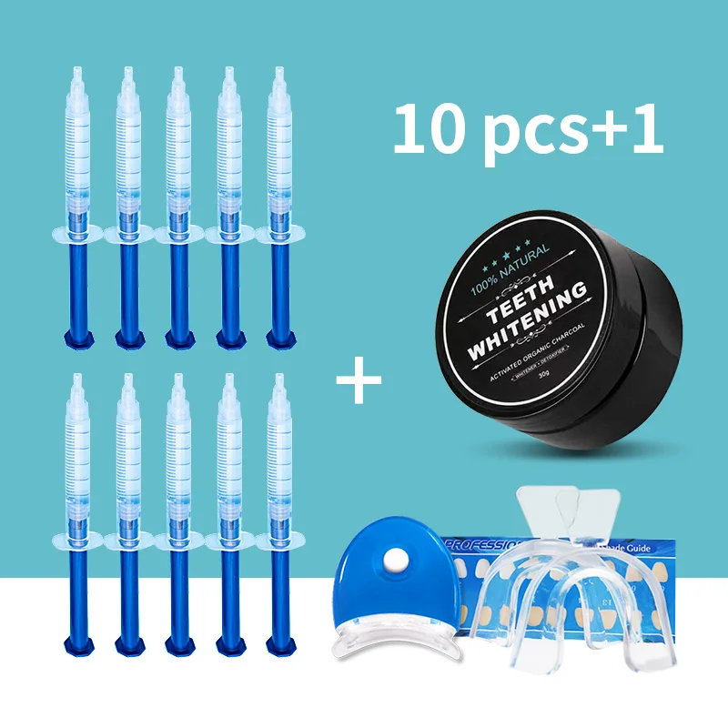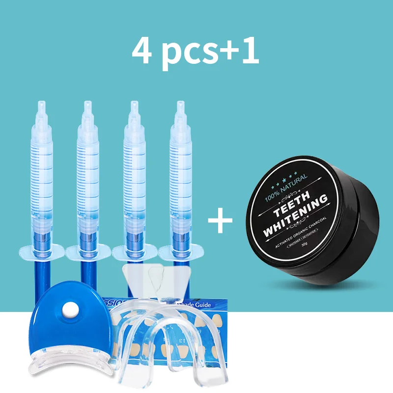 Пероксидный гель для отбеливания зубов, набор со светодиодный светильник кой, натуральный органический отбеливатель для зубов, активированный кокосовый уголь, порошок