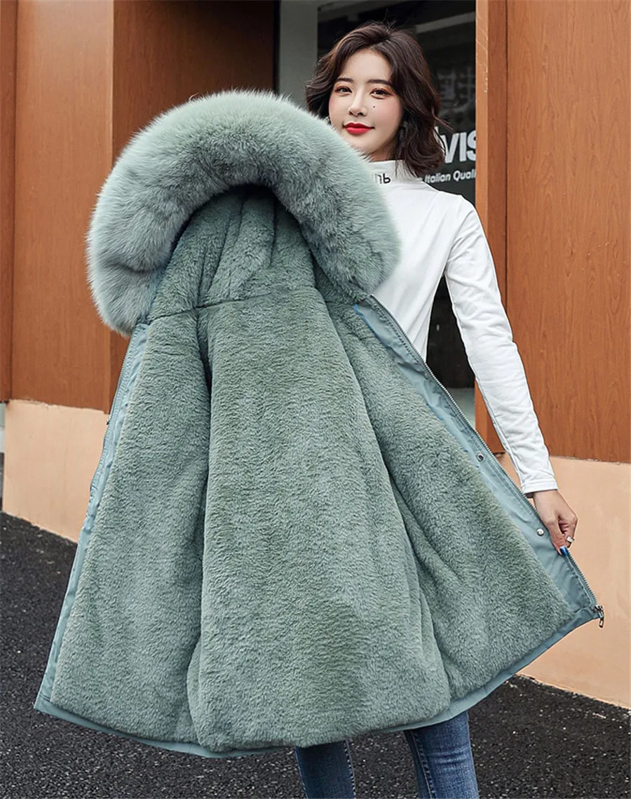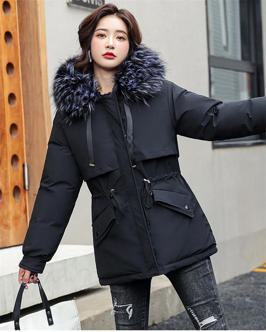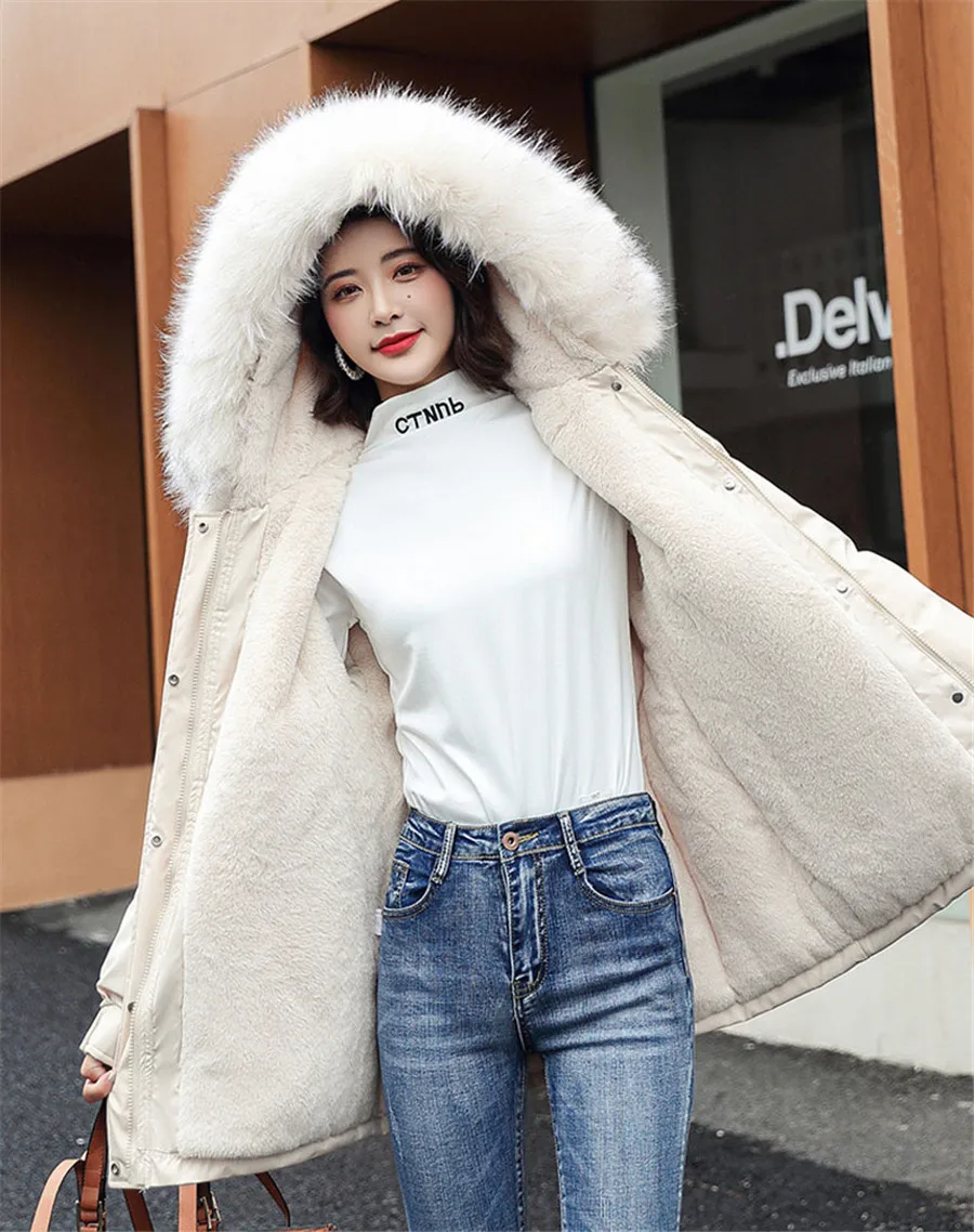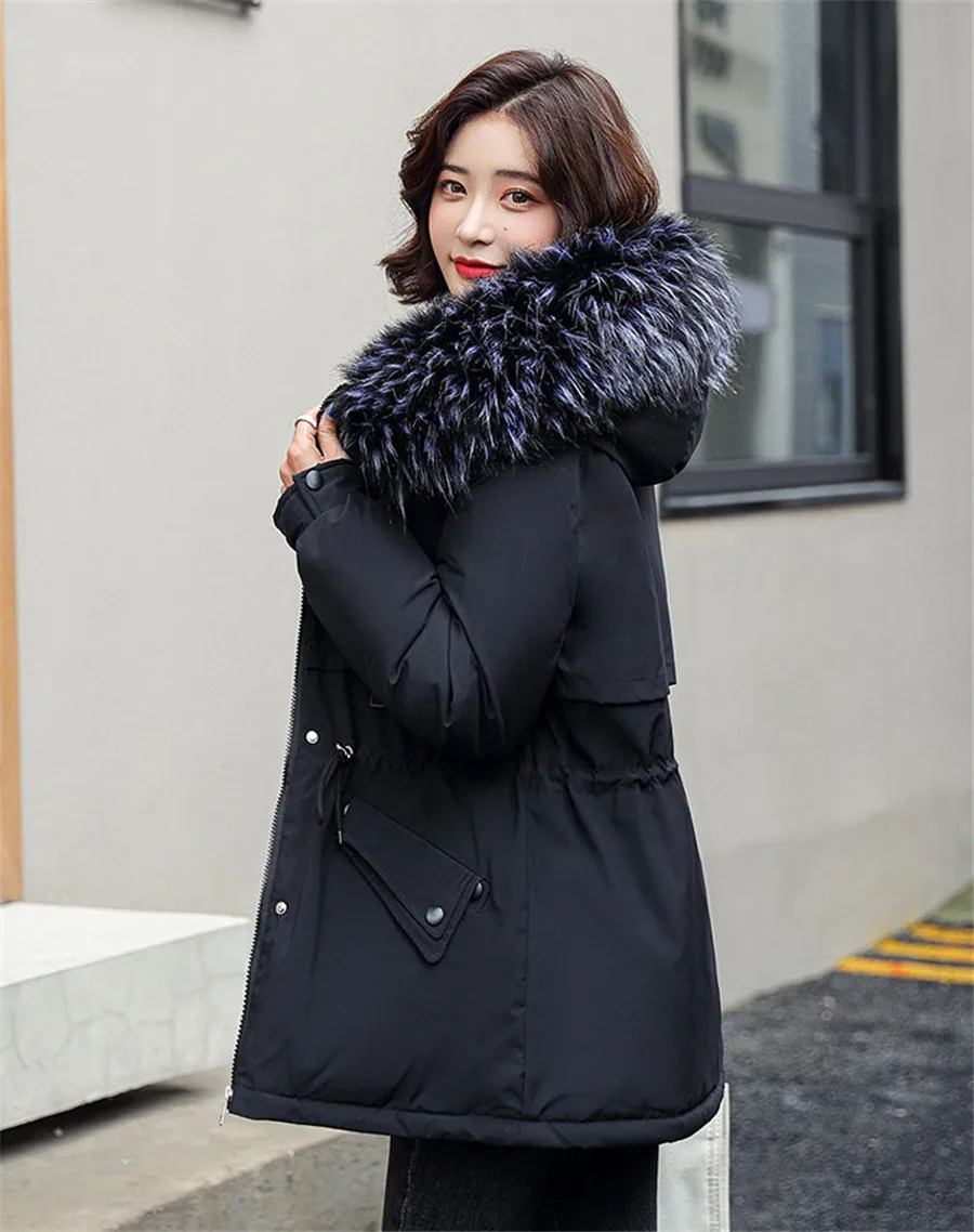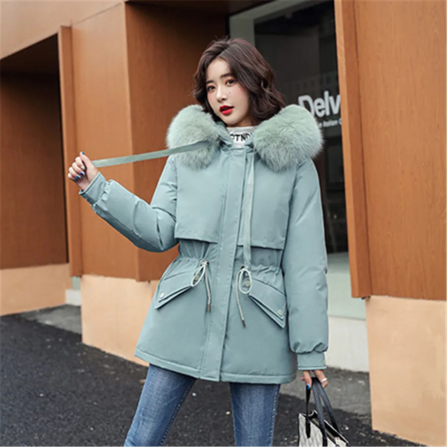 Женская куртка с меховой подкладкой, свободная хлопковая куртка с капюшоном и меховым воротником на толстой подкладке, зима 2022