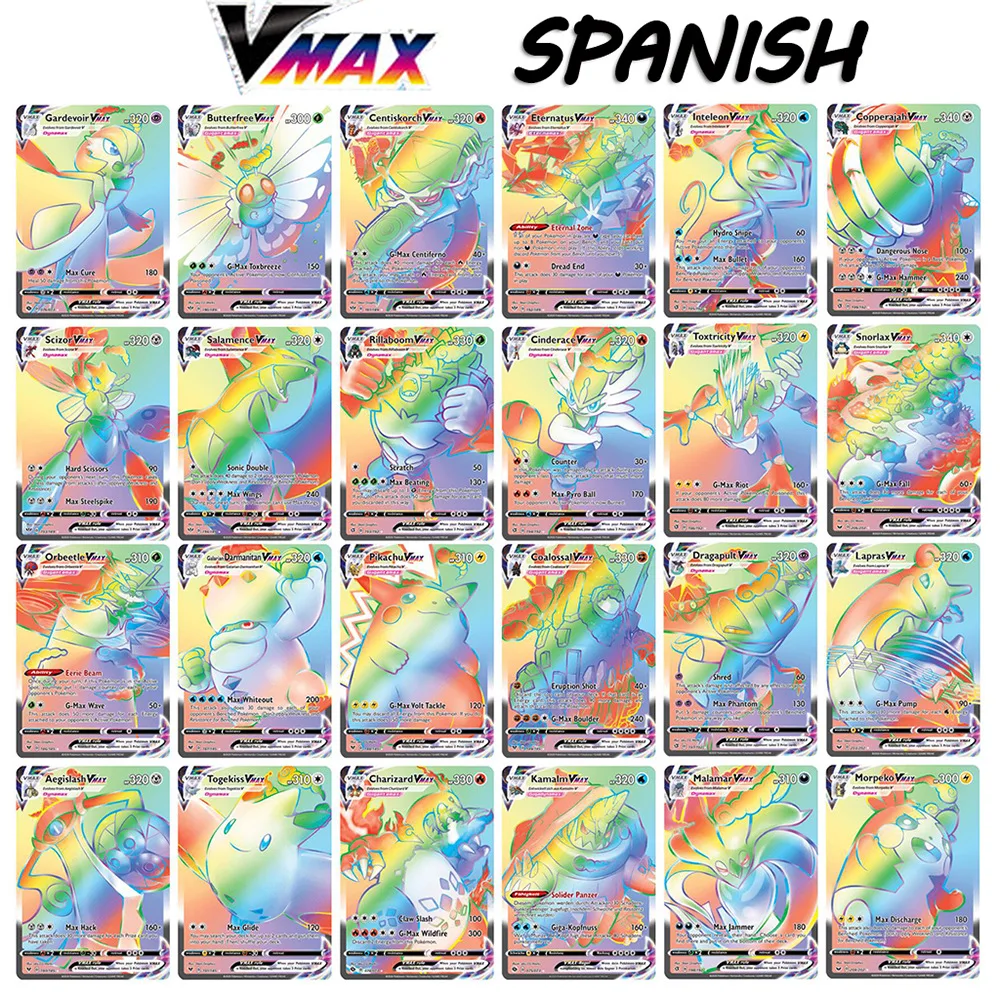 Испанский Pokemon VMAX GX Базовая V-карта Pokemon Flash Радуга карта развлечения коллекция настольная игра Боевая карта детская игрушка подарок