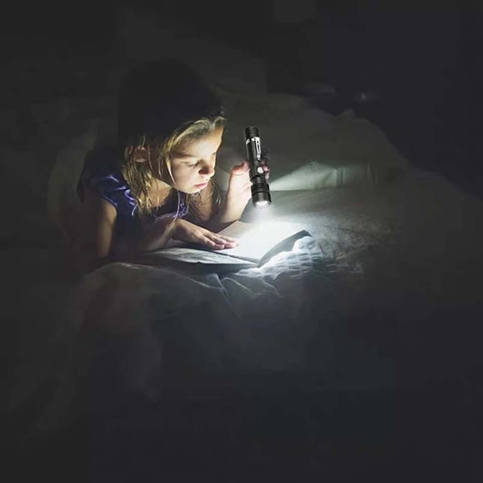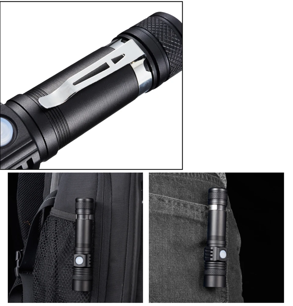 Тип лампы: T6 / U3 / V6Переключатель: кнопочный переключательЦвет: черныйСветильник режим: высокий/низкий/стробоскопическийСрок службы: 100000 часовЗум: Телескопический масштабируемыйВодонепроницаемость: IPX5, не поддерживает погружение.Аккумулятор: 1x18650 (без аккумулятора)Материал: алюминиевый сплав