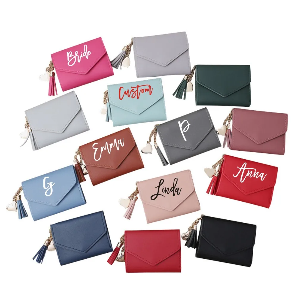 Женский кошелек на заказ, индивидуальный короткий кошелек из искусственной кожи, тонкий кошелек-конверт для карт, Женский кошелек для монет