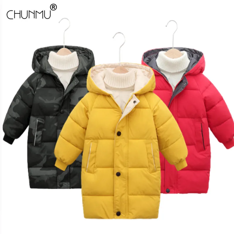 Пуховик длинный детский из чистого хлопка, утепленный, зимний, 2022