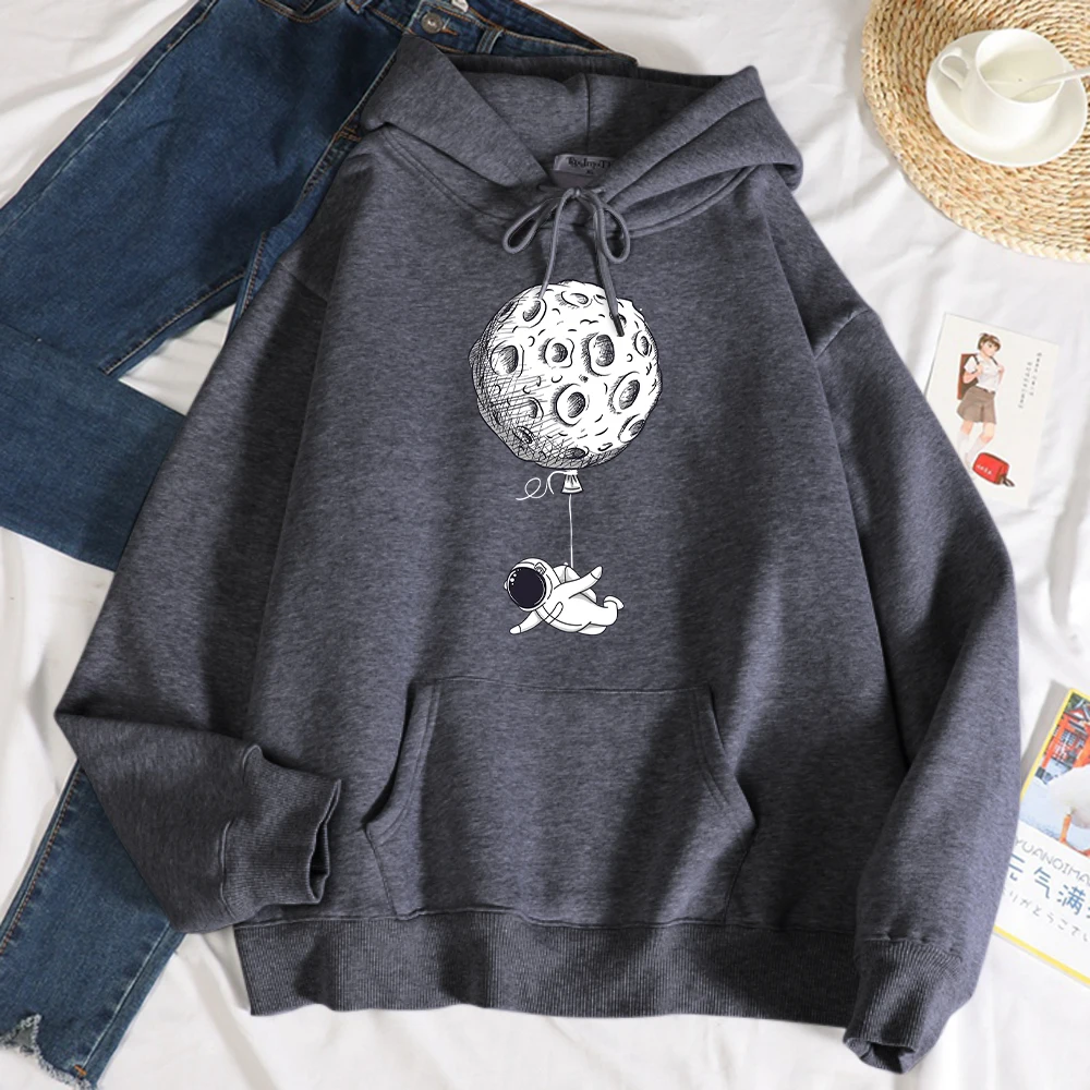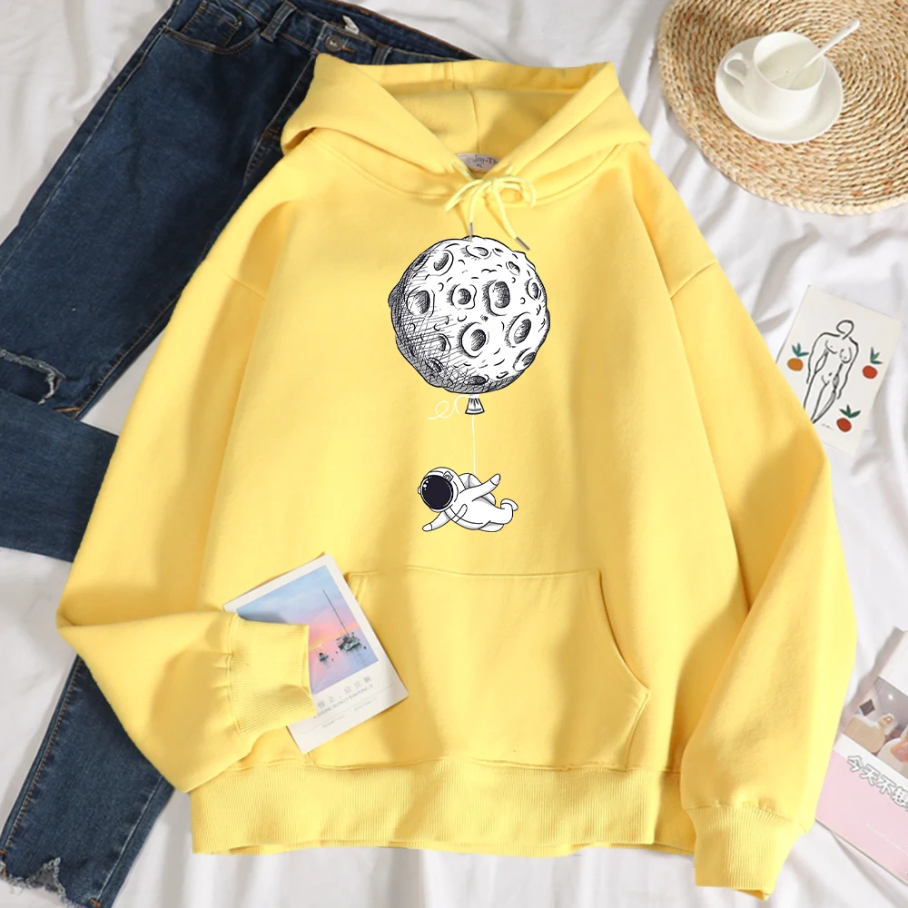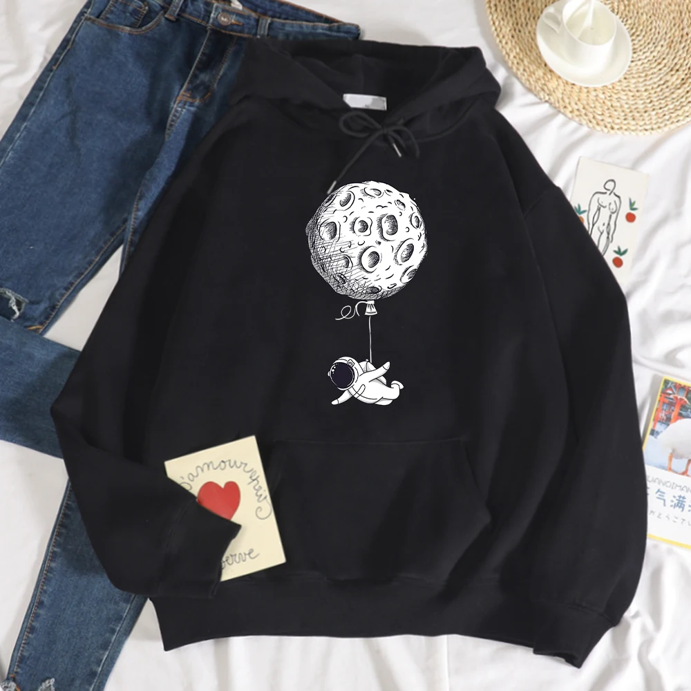 Женская толстовка с капюшоном, принтом космонавт, луна, осень, хип-хоп, S-XXL