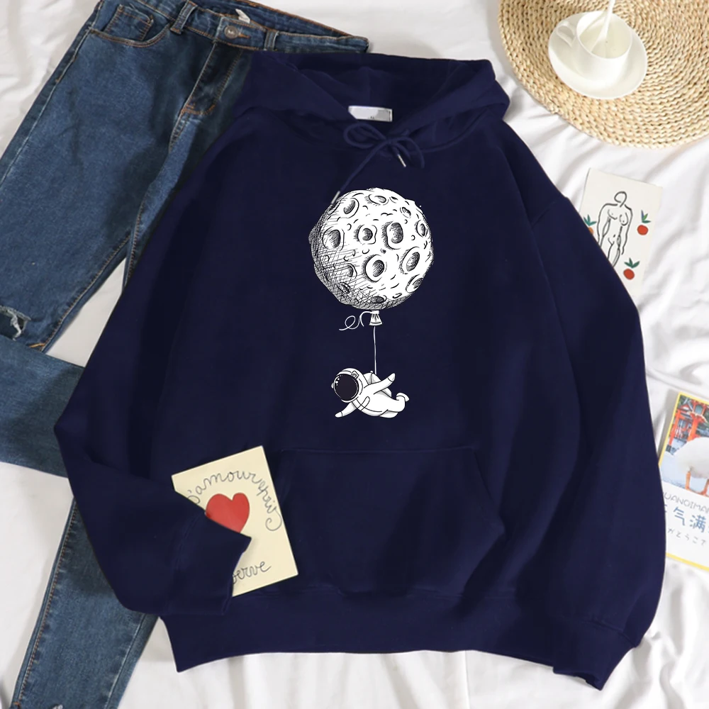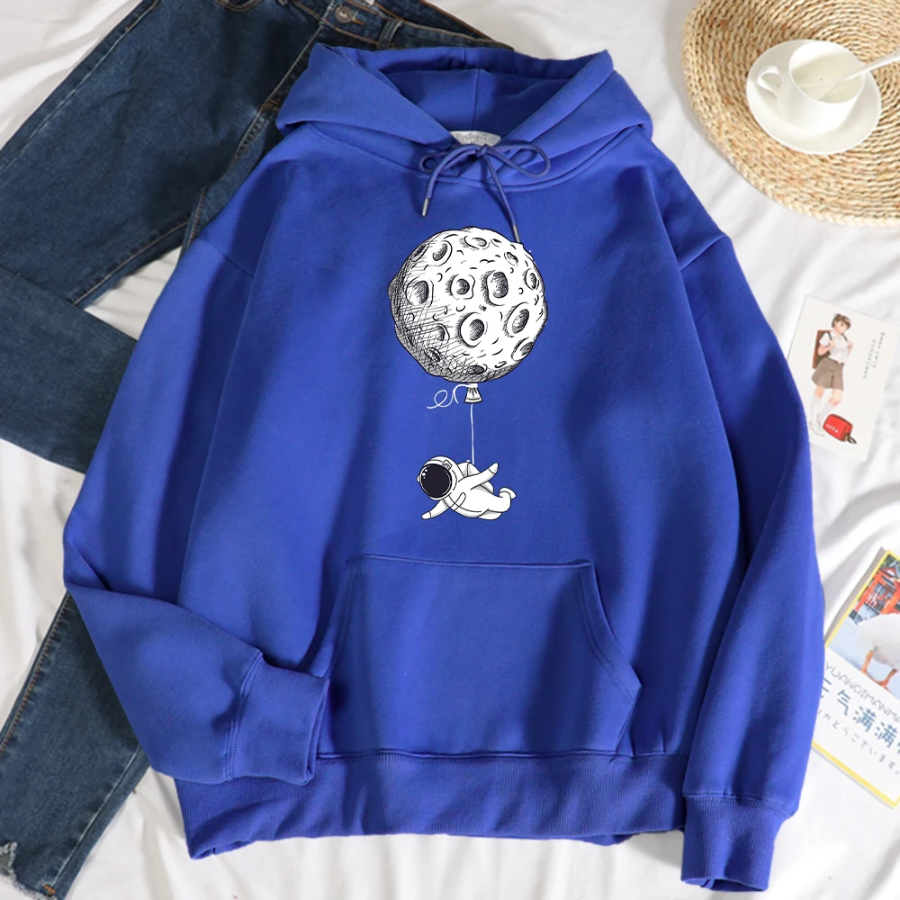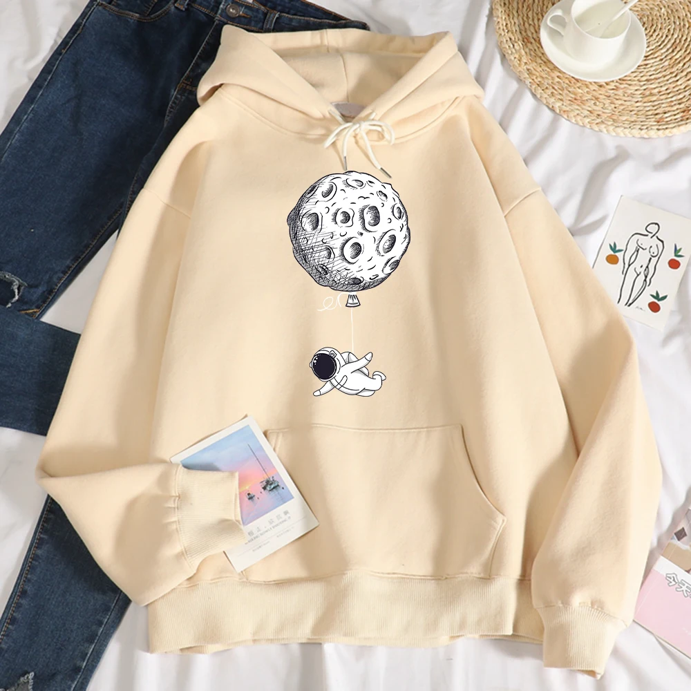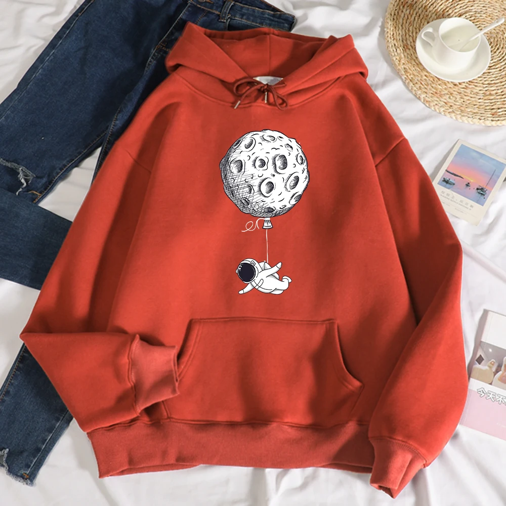 Женская толстовка с капюшоном, принтом космонавт, луна, осень, хип-хоп, S-XXL