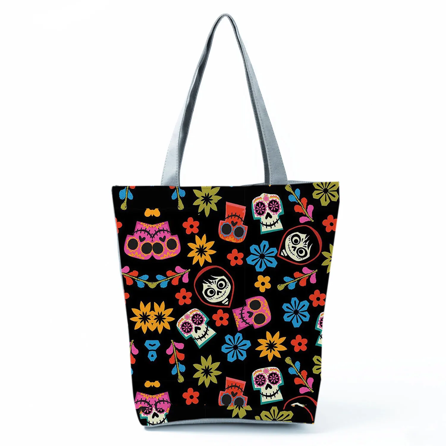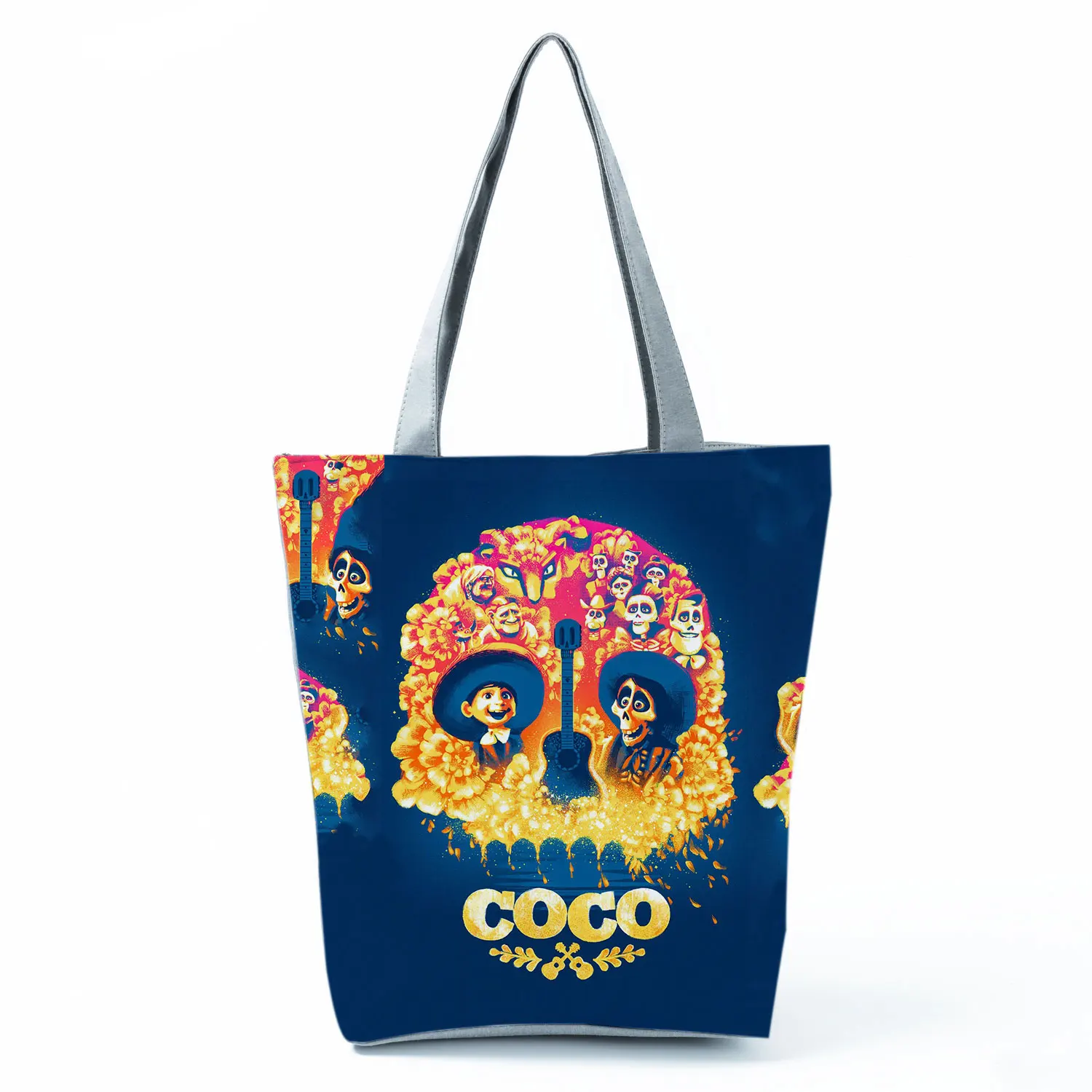 Женская сумка-тоут Disney Coco, синяя сумка через плечо с цветочным принтом и черепом на Хэллоуин, многоразовая сумка для покупок, крутая пляжная сумка для путешествий