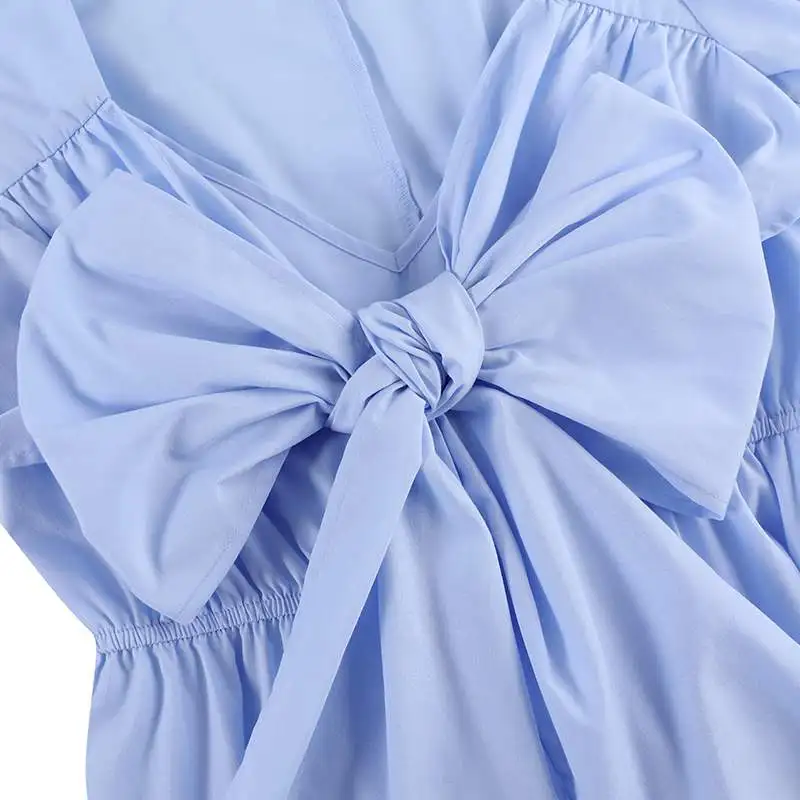 Рубашка женская, с пышными рукавами, повседневная, с бантом, одното...