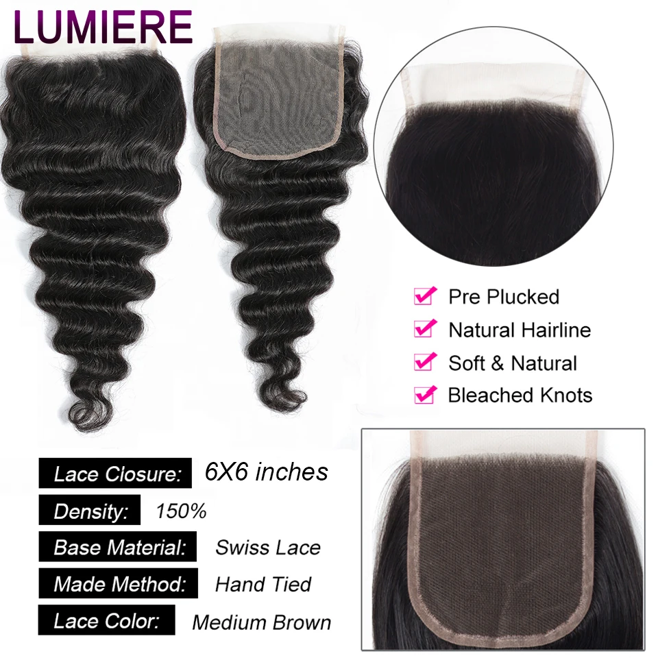 20 "22" 24 "свободная глубокая волна Закрытие Remy человеческие волосы 5x5 6x6 HD Прозрачная Кружевная застежка и фронтальная предварительно выщипанная с волосами младенца