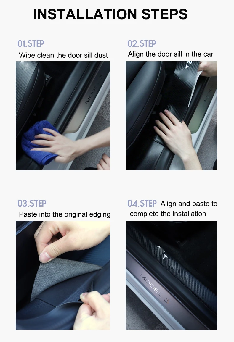 4 шт., Защитная Наклейка на порог автомобиля Tesla Model 3, S, Mode...