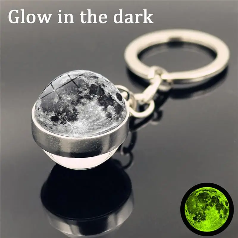 Брелок для ключей, светящийся в темноте, брелок для ключей с изображением планеты и Луны