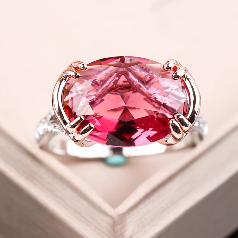 Женское Обручальное кольцо с кристаллами, покрытое белым золотом 14 к, обручальное кольцо с крупным овальным красным камнем