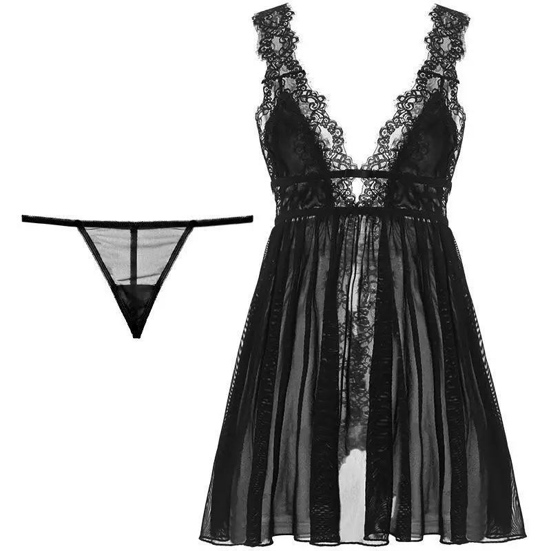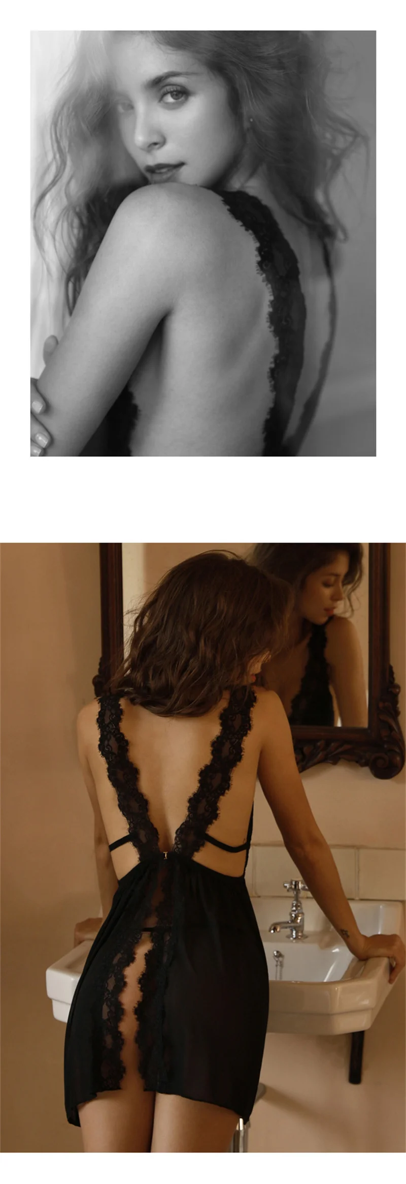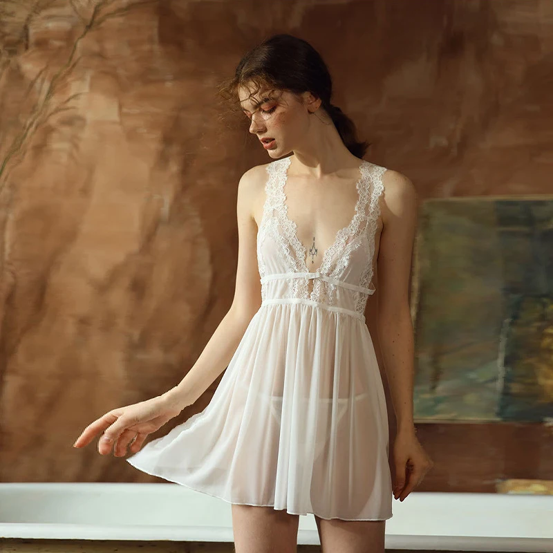 Веер Милая сексуальная пижама с глубоким V-образным вырезом кружев...