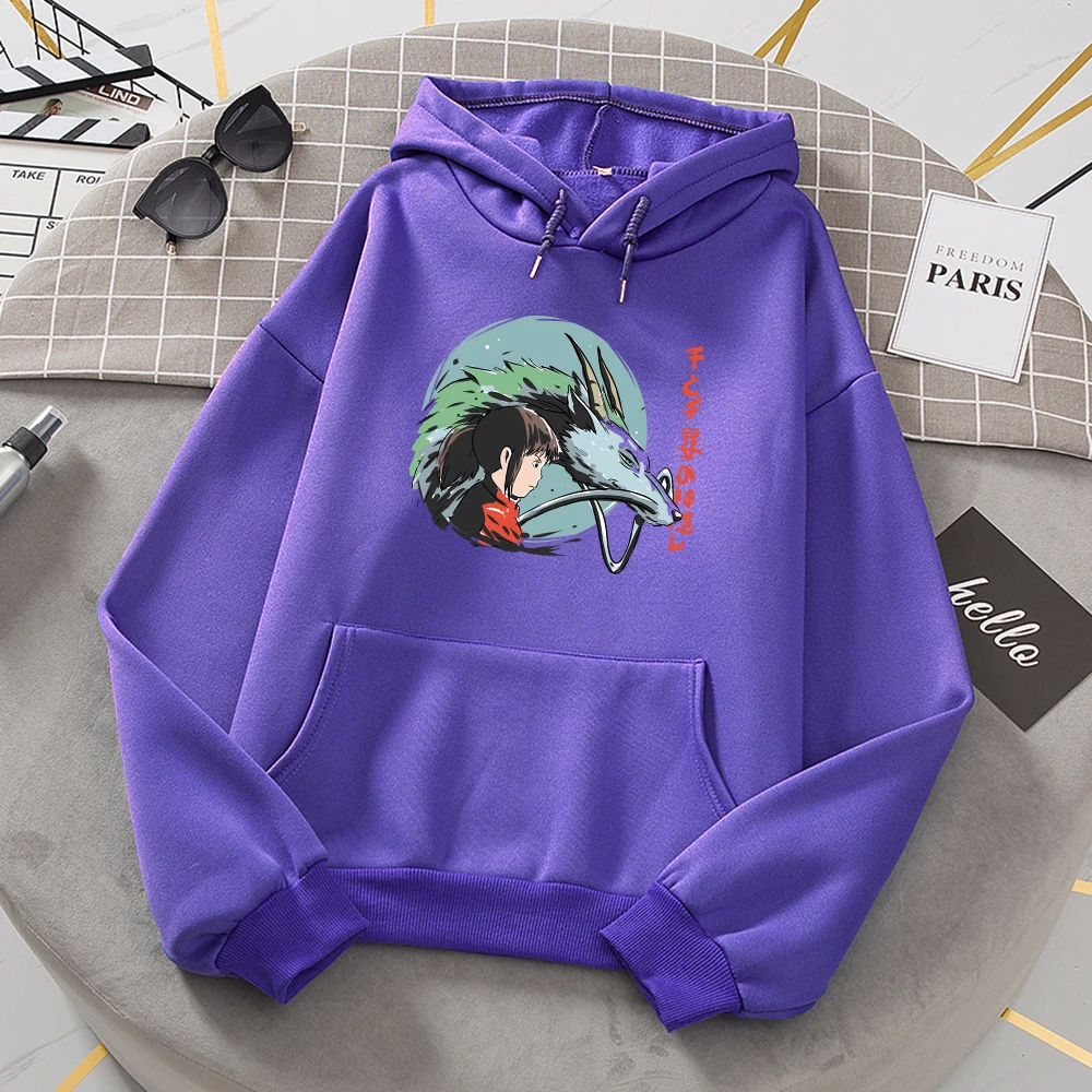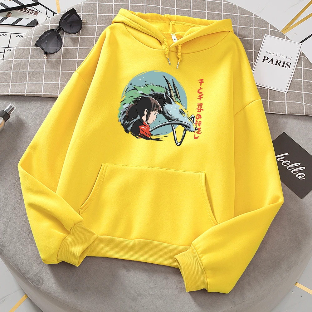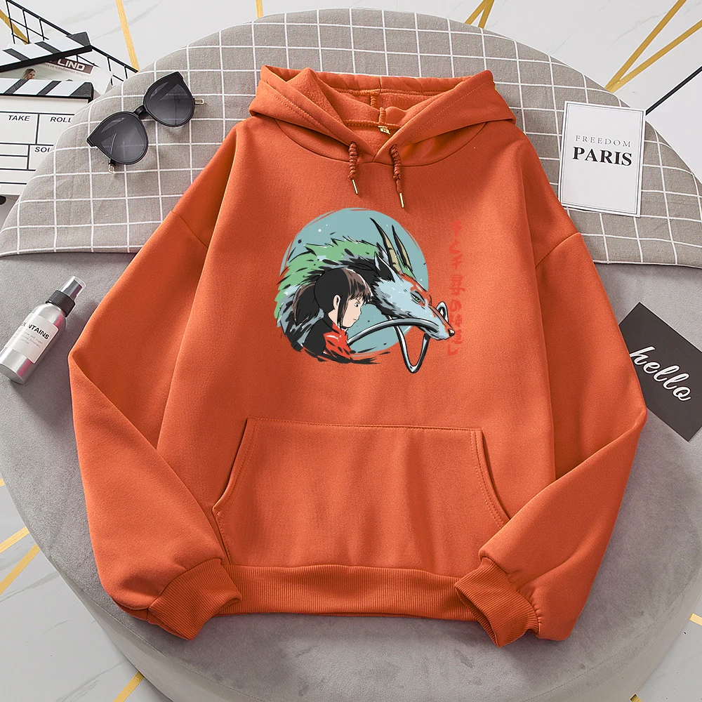 Толстовки с рисунком из аниме Spirited Away, женские свитшоты большого размера с мультяшным рисунком, худи с меховой подкладкой в стиле Харадзюку, модная мужская одежда