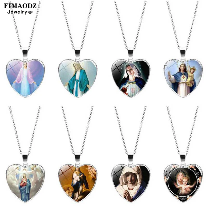 FIMAODZ 11 стилей благословенная Дева Мария ожерелье мамы малыша искусство сердце форма стеклянная Хрустальная подвеска цепочка Ювелирные изделия