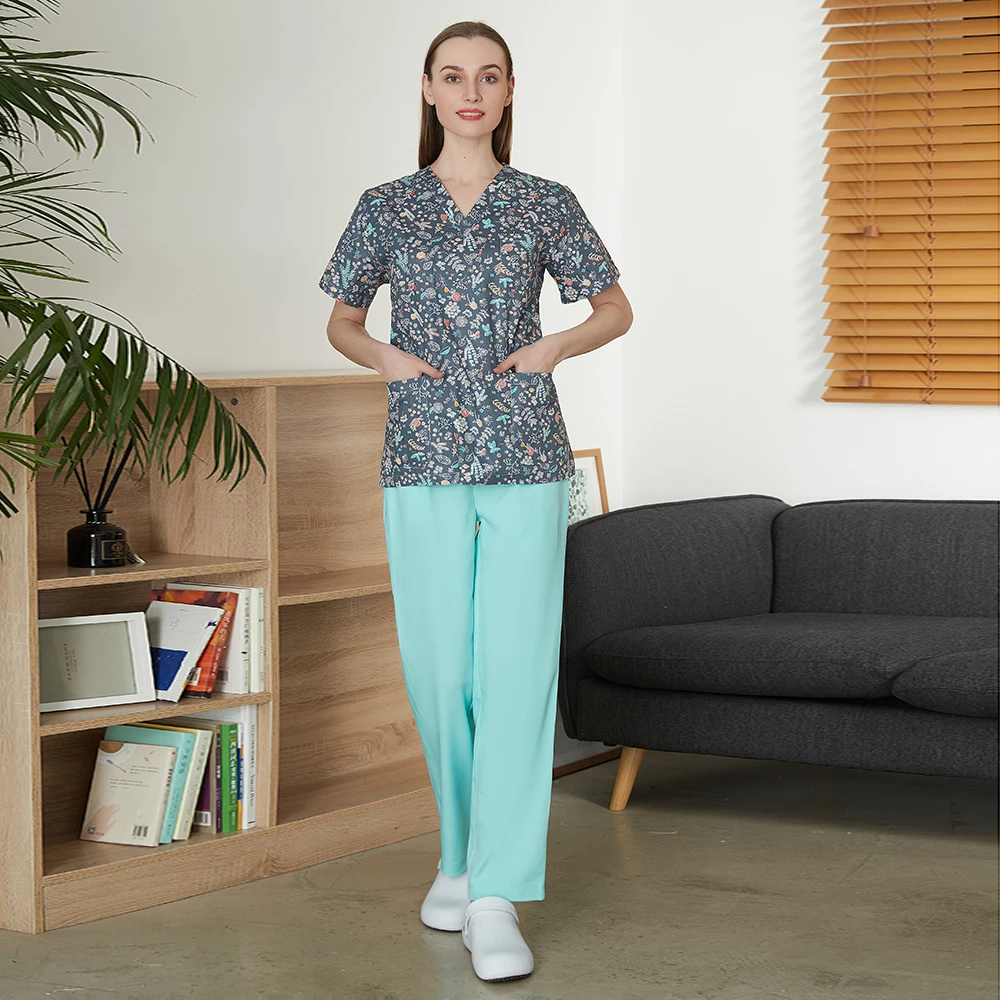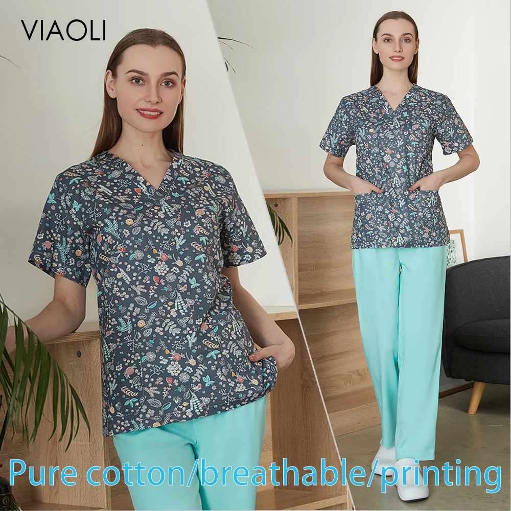 Медицинская униформа из 100% хлопка с цветочным принтом, униформа м...