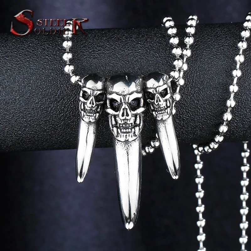 Сталь солдат, панк-рок, череп, кулон ожерелье ювелирные изделия Гео...