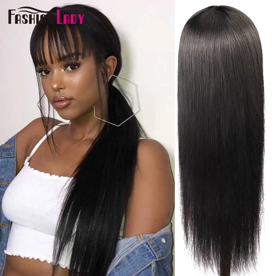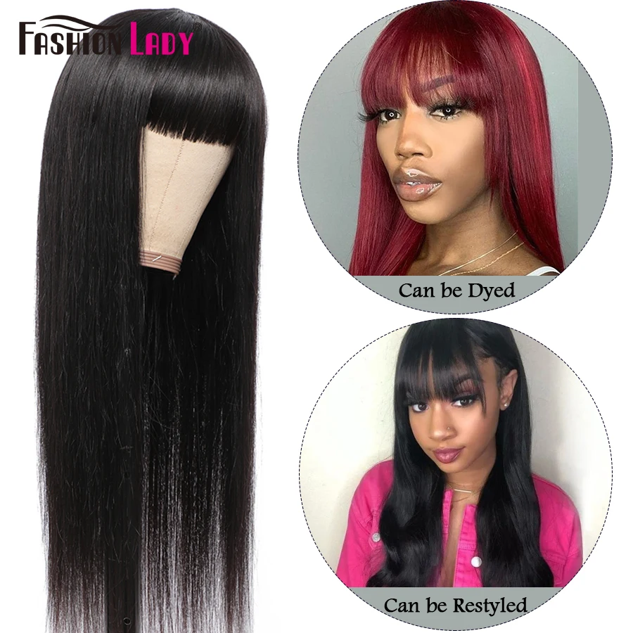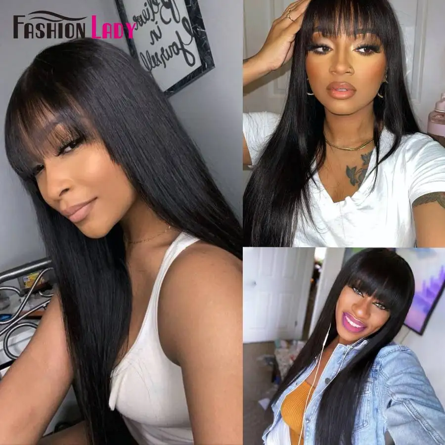 Парик из человеческих волос с челкой, прямые бразильские волосы, парики для женщин, Искусственные парики без клея, парики Remy полностью машинной работы