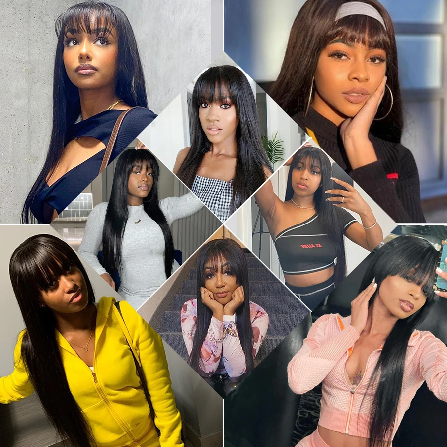 Wig TypeHuman Hair Wigs with Bangs, Fringe Wig Human Hair