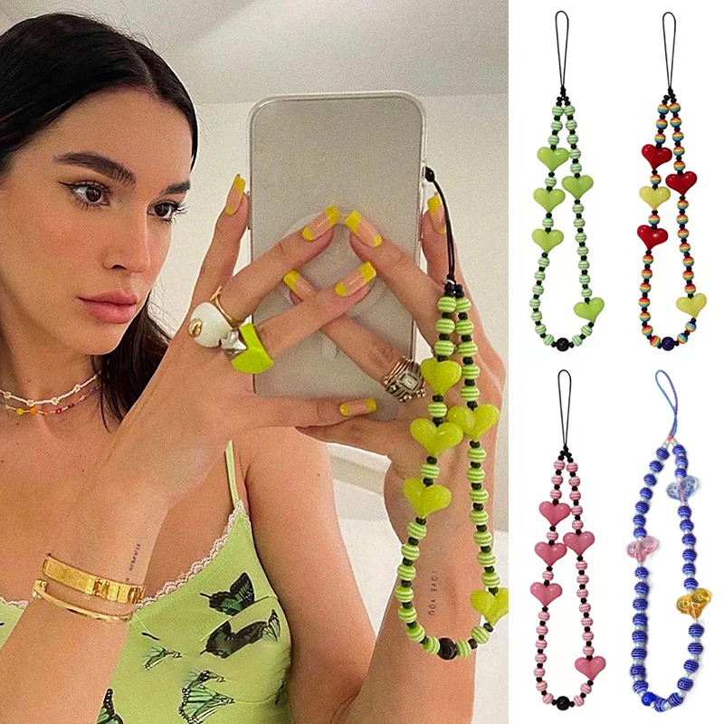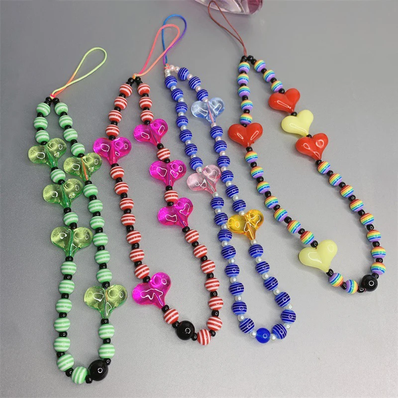 Новый цветной яркий прозрачный ремешок в виде сердца, радужного цвета, цепочка для сотового телефона, брелок, ремешок на запястье, шнур для подвешивания