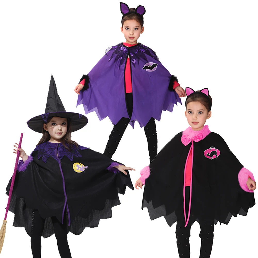 Плащ ведьмы на Хэллоуин, головной убор, халат, костюмы для косплея, пальто, плащ, шляпа ведьмы, вечерние костюмы для девочек на Рождество