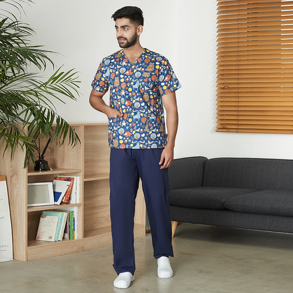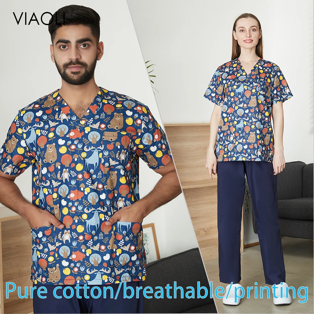 Одежда для хирургии с принтом животных, хлопковая медицинская одежд...