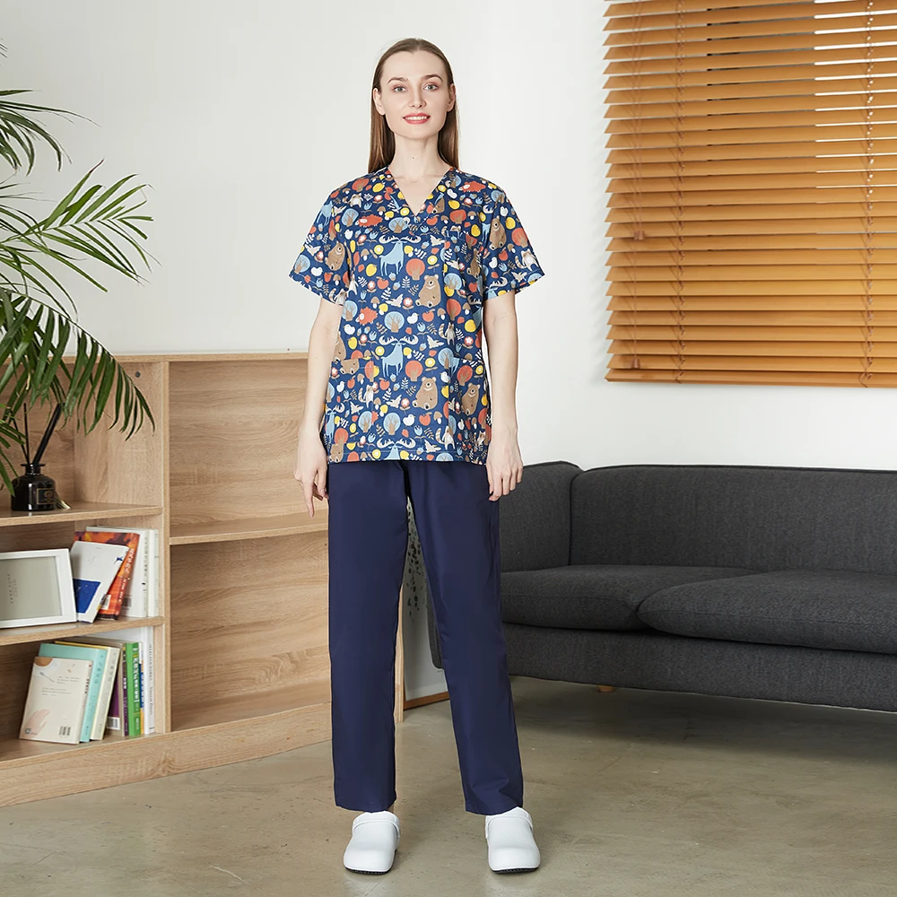 Scrubs tops Cute Cartoon printing Kindergarten teacher workwear pet...