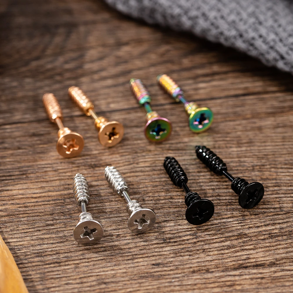 Серьги-гвоздики в стиле панк из нержавеющей стали с винтом для мужч...