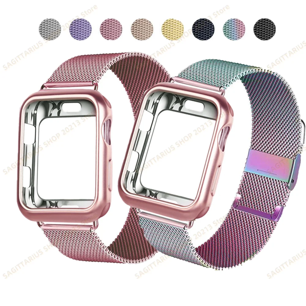 Чехол с магнитной петлей + ремешок для apple watch band 44 мм 40 мм 42 мм 41 мм 45 мм 38 мм, металлический ремешок для браслета iWatch 7 5 4 3 2 SE 6
