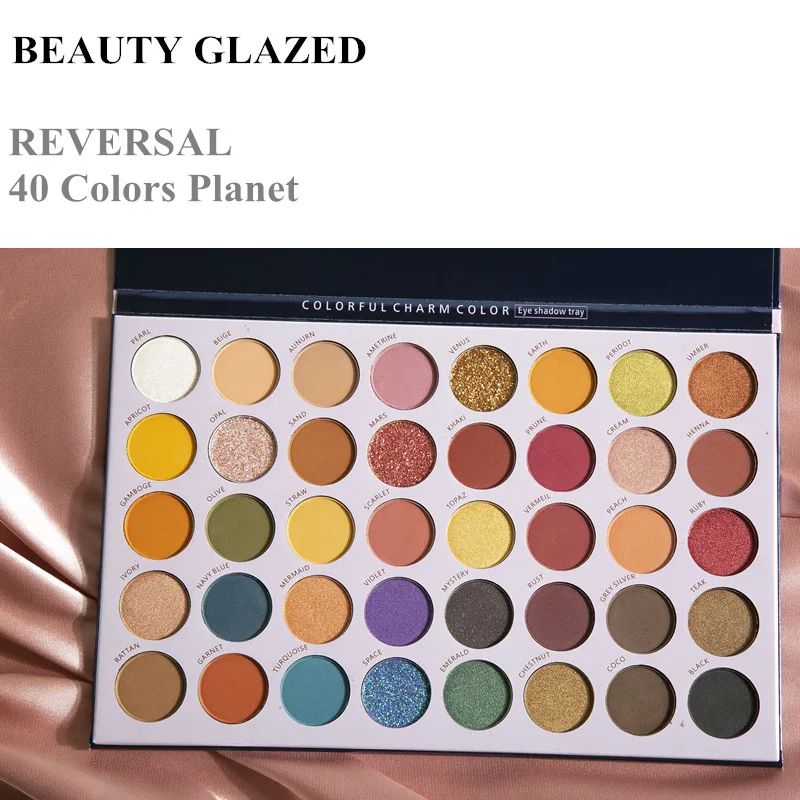 Палетка теней BEAUTY GLAZED с эффектом разворота, тени для век с блестками, матовые блестящие, водостойкие пигментированные, 40 цветов