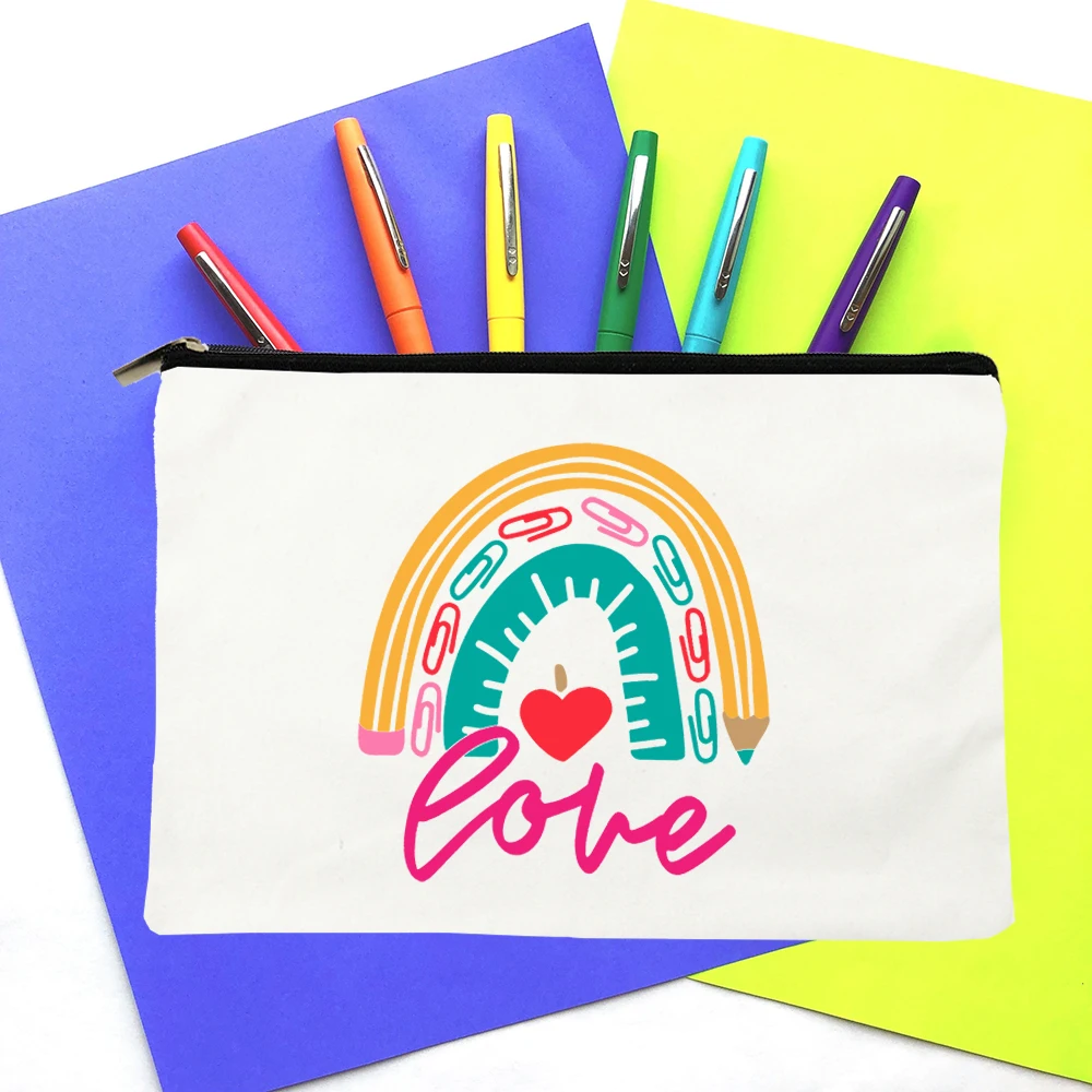 Радужные косметички для учеников учить любовь и вдохновение, сумочки для карандашей, повседневный Органайзер на молнии для макияжа, Подарочный кошелек для туалетных принадлежностей