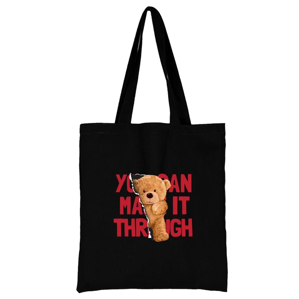 Холщовая сумка-шоппер с милым медведем, вместительные Женские сумки...
