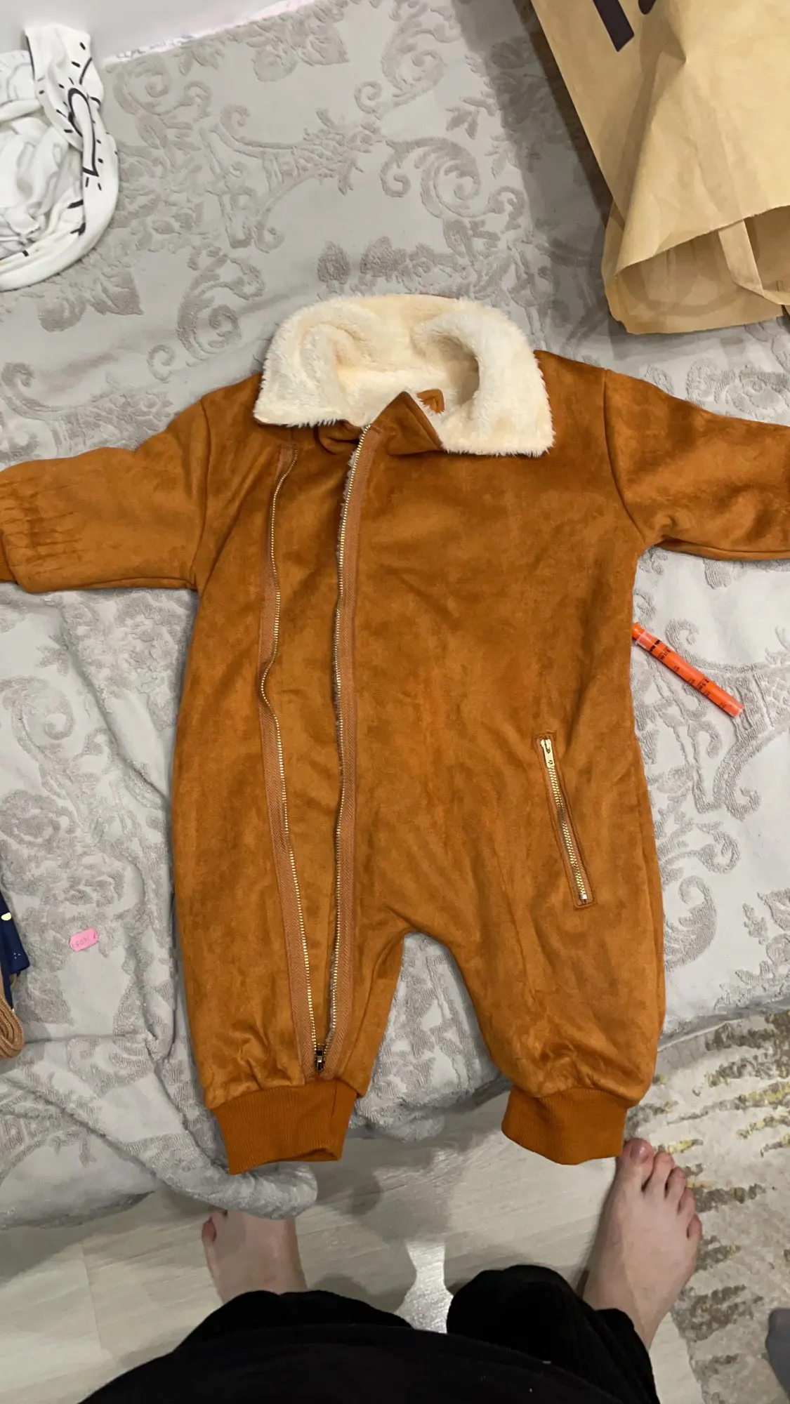Спасибо продавцу. Очень быстро пришёл заказ . Чуть меньше месяца. Впервые покупая на Алиэкспресс одежду я НЕ разочарована, а на оборот в восторге. Товар такой как в описании. Отличный комбинезон. Ткань мягкая и приятная. Не для русской зимы. Осенне - весенний вариант. Если бы молния на белом была серебристого цвета, а не золотистого, вообще было бы супер.